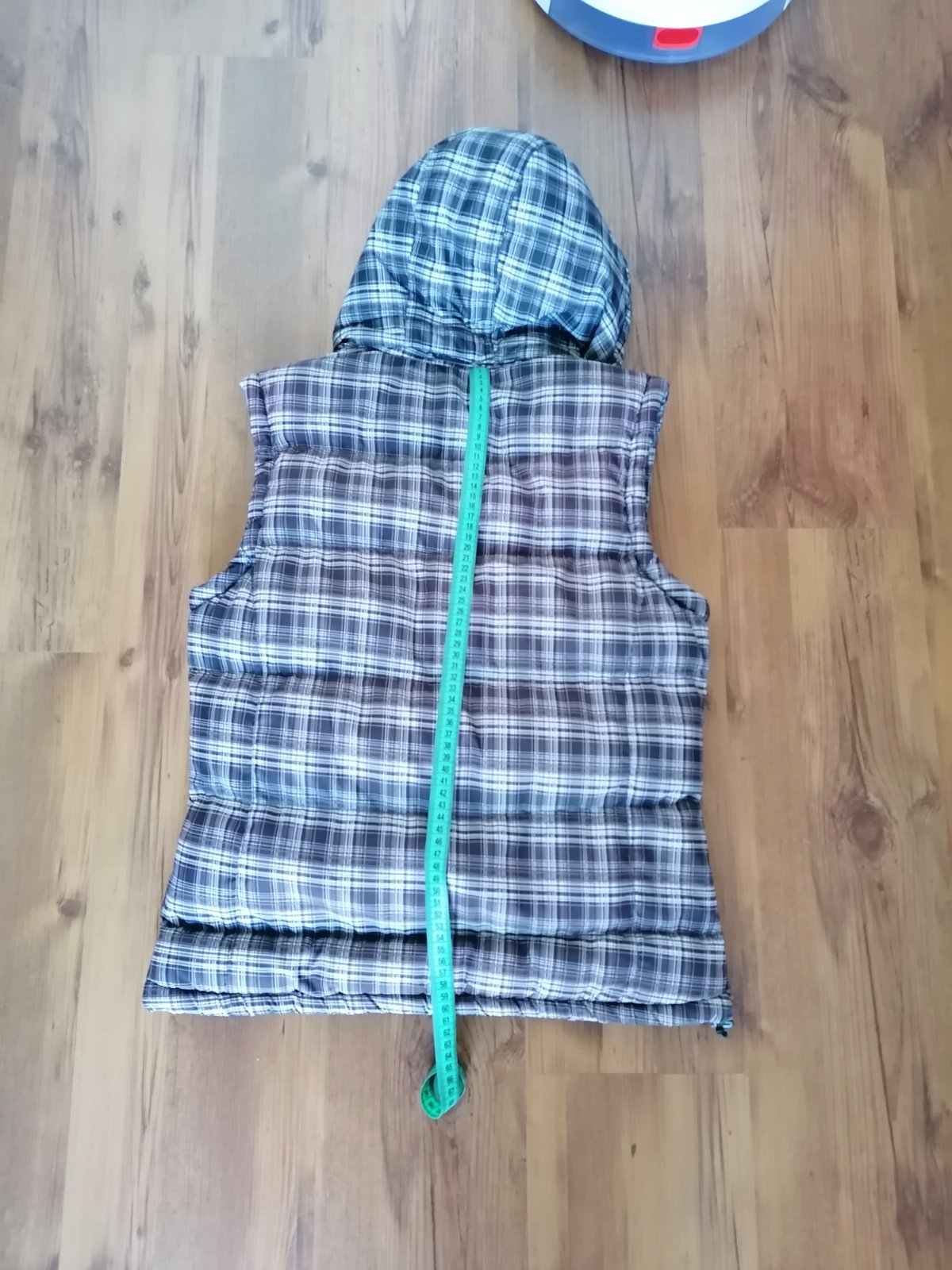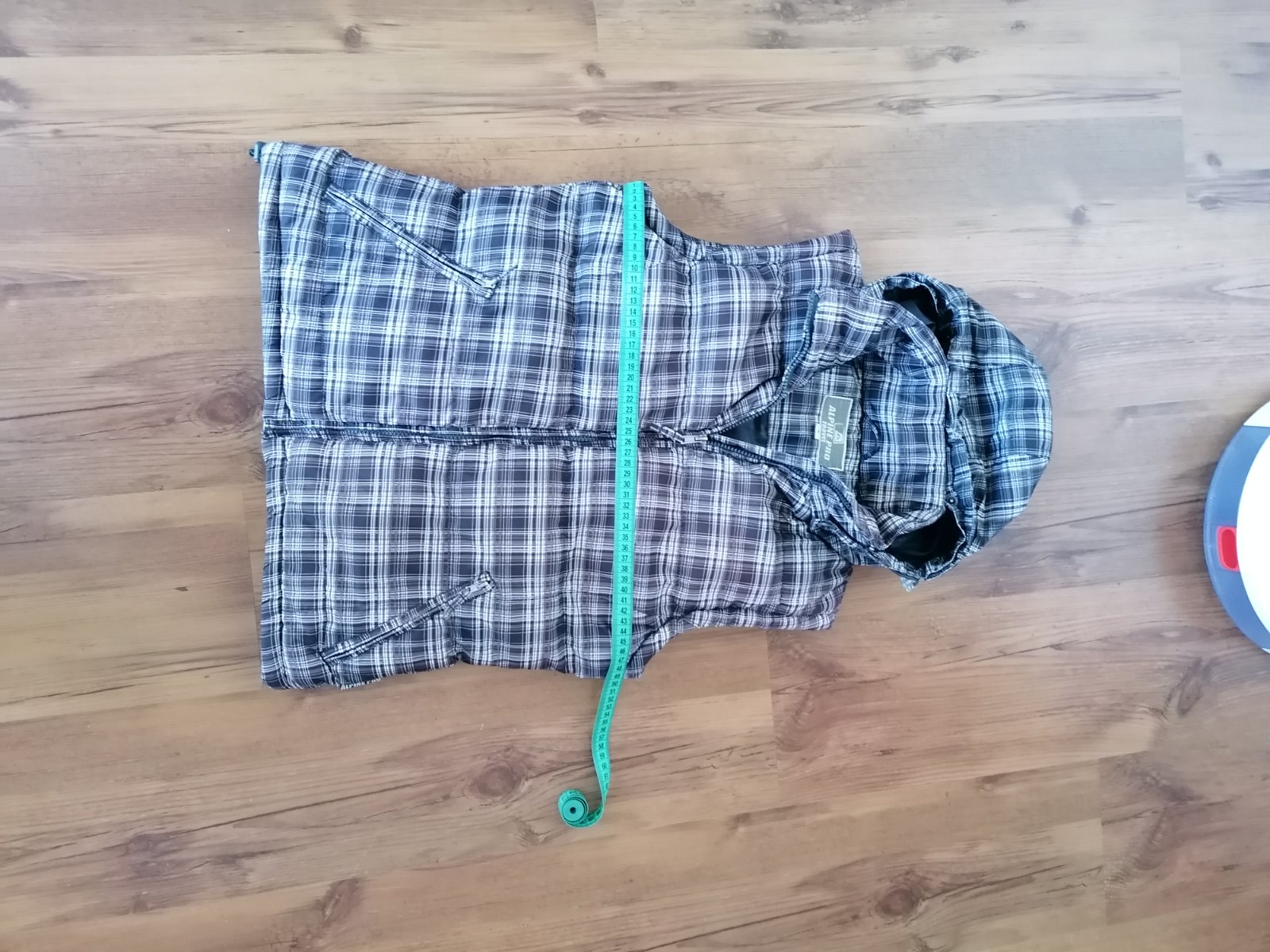 V top stave, veľmi hrubá vesta s odnímateľnou kapucňou celková dĺžka 52, šírka cez prsia 48 x2