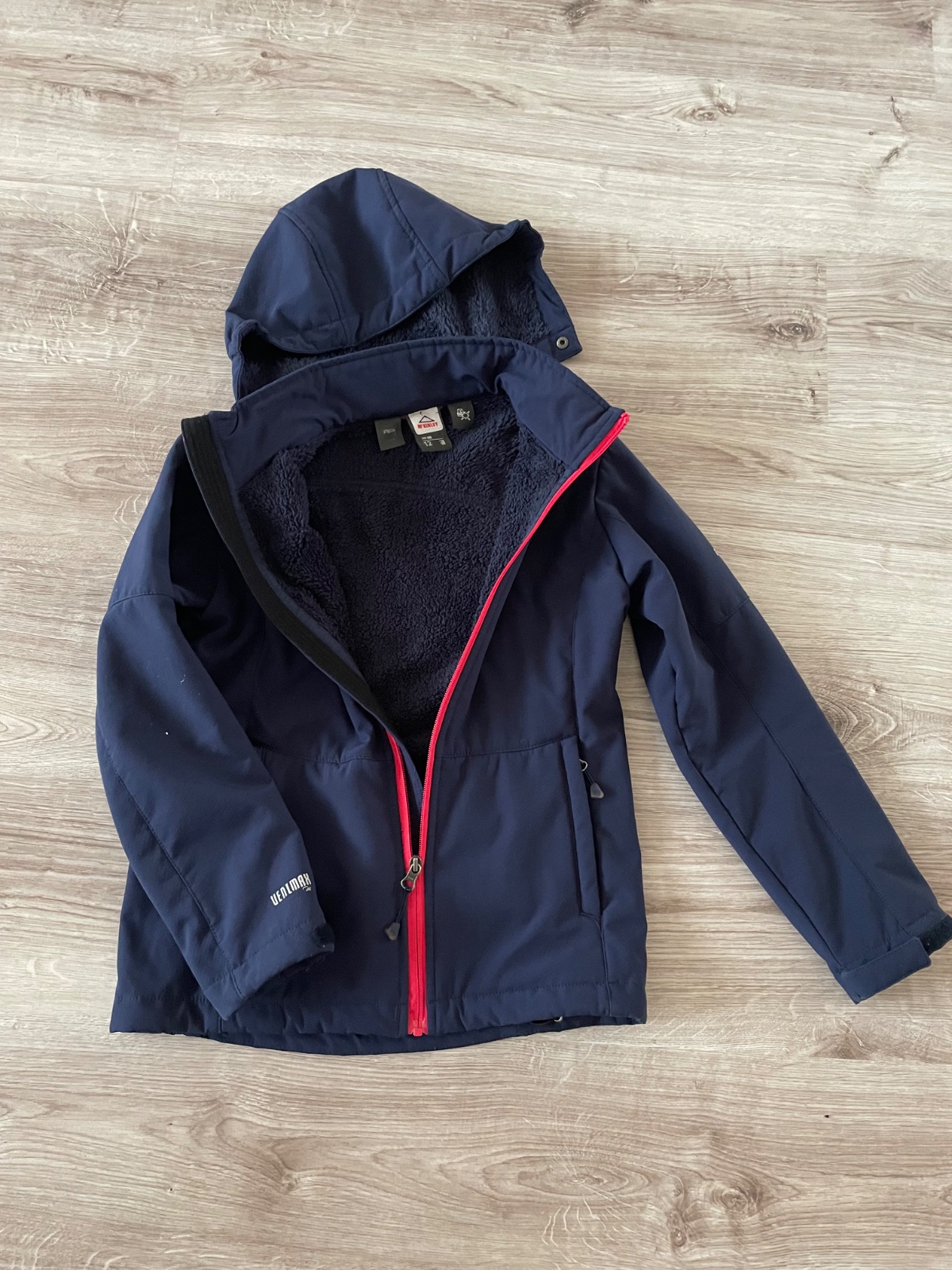 Dievcenska tensia softshell bundicka vel. 152 / 12r. Tmavomodra s koralovym vnutrom. Vodny stlpec 5000mm. Velmi dobry stav..