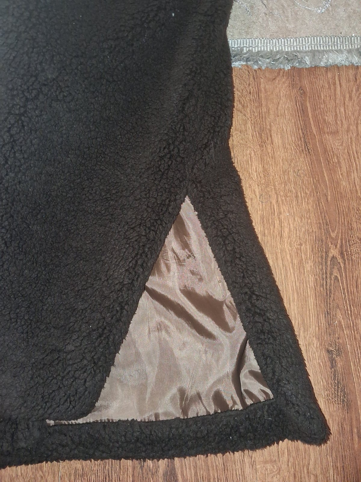 Krásny dlhý,tedy kabátik, v čokoládovej farbe,oblečený pár krat, top stav.Kabat je veľ aM ,kľudne aj na menšie L.Zapinanie na gombiny,po bokoch ma kabat razporky