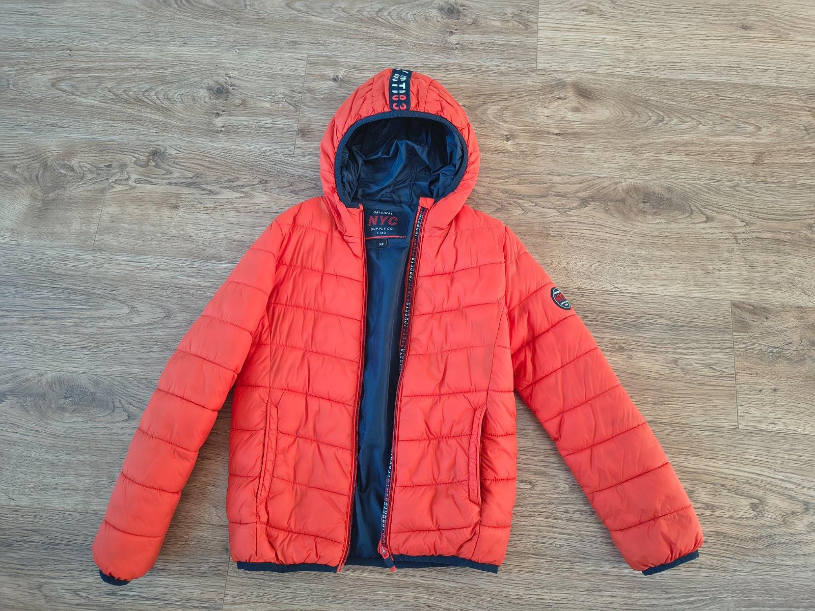 oranžová farba, bez kapucne, šuštiaková, tenšia, zapínanie na zips, vnútro podšívka, dobrý stav veľkosť: 9/10 rokov materiál: polyester rozmery: dĺžka od pleca dole 60-6 cm, šírka pod pazuchou 50 ...