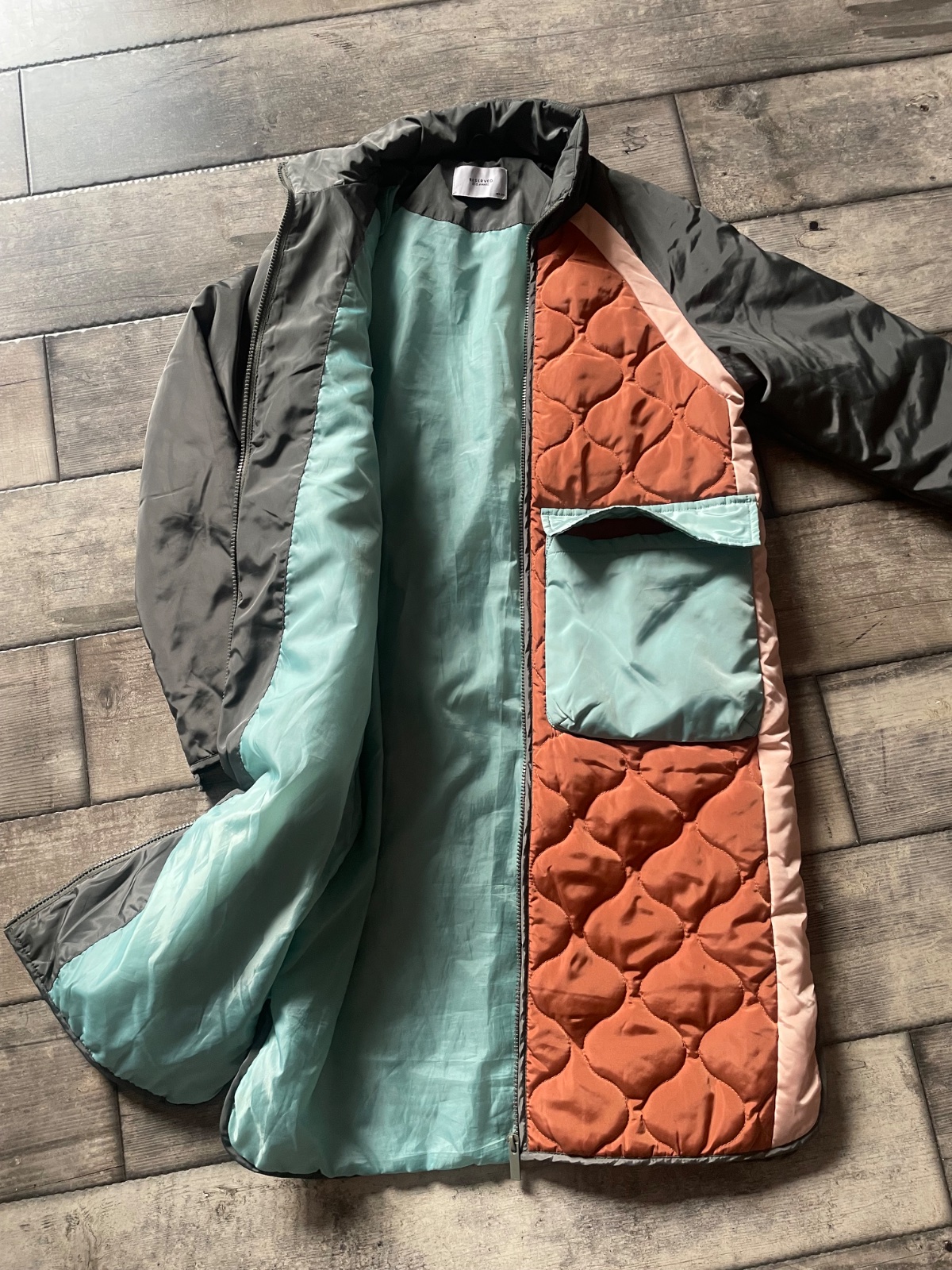 Krásna neonovo oranžová farba Širší a kratší strih, šušťáková, podšita tenkou látkou - na jar a jeseň uplne super Top stav