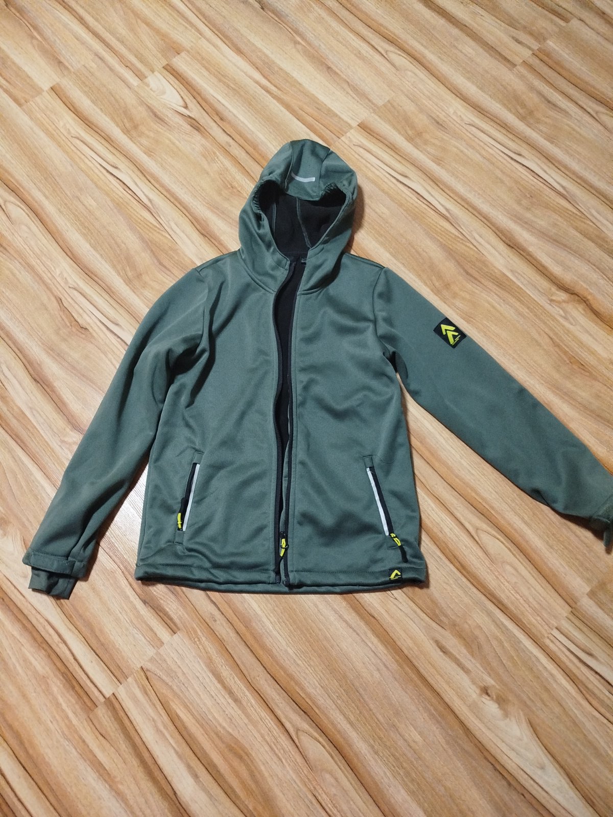 Pekna tensia softshellova bundicka vo velmi dobrom stave. ROZMERY: dlzka rukavu od kapucne: 63cm, rukav od pleca: 55cm, celkova dlzka od pleca: 59cm, sirka pod pazuskami: 43cm