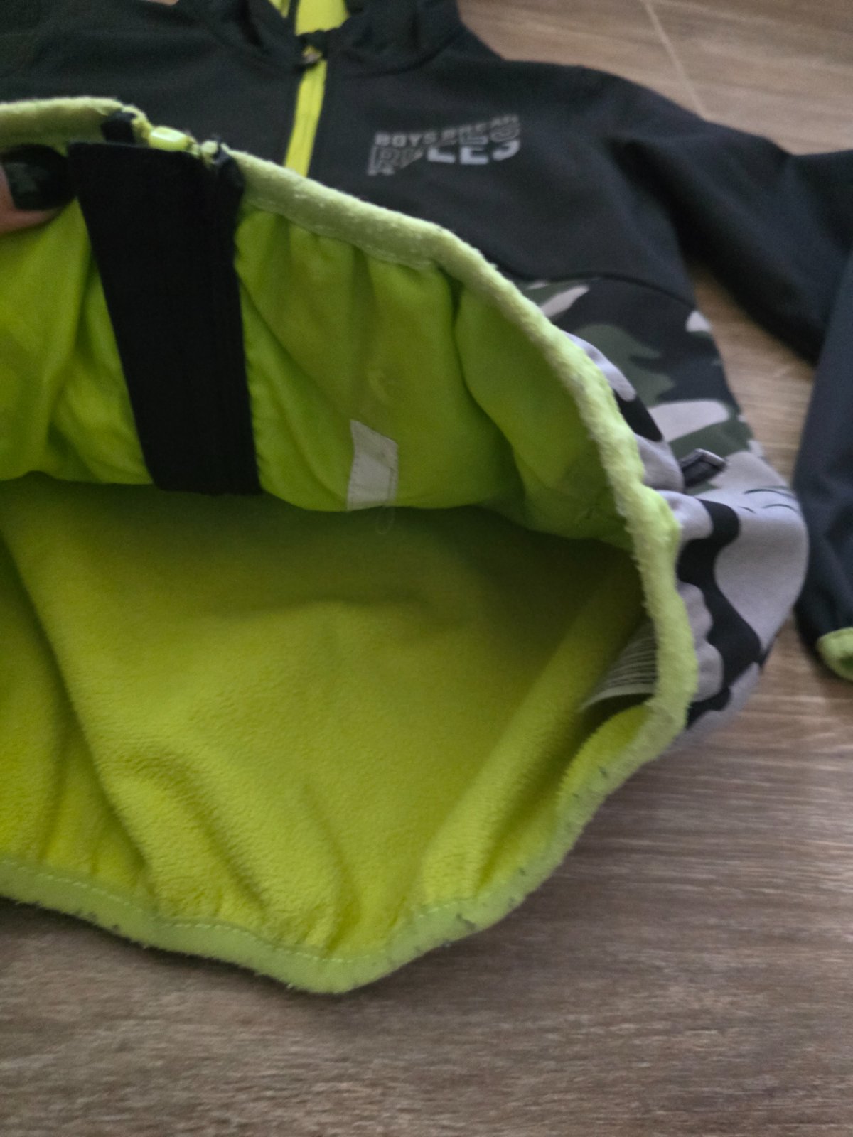 Nosená bunda, kvalitná, nejaká chybička sa nájde, napr. na zipse sa šúcha farba, nič hrozné a este vnutorna gumicka na stahovanie dole je pokrútená. Určite poslúži, pekne sedí na dieťati.
