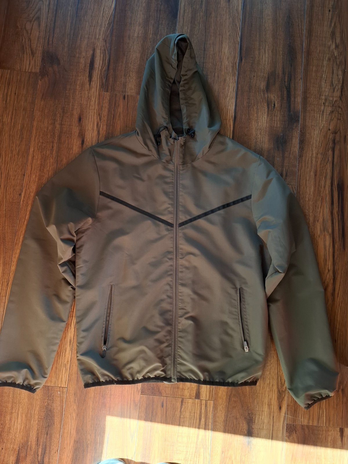 Prechodná bunda, nevhodná veľkosť,tak posúvame, pod pazuchou oprava, viď foto, bez fľakov, bez vážnych poškodení, tenká podšívka.
