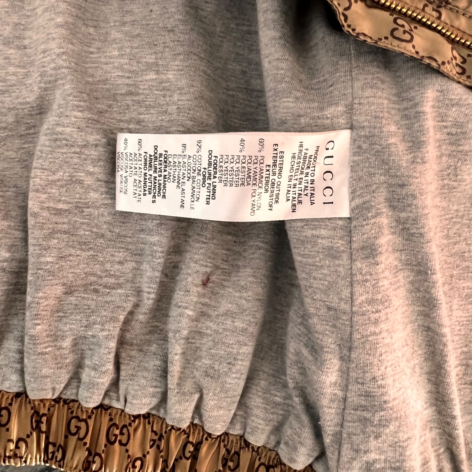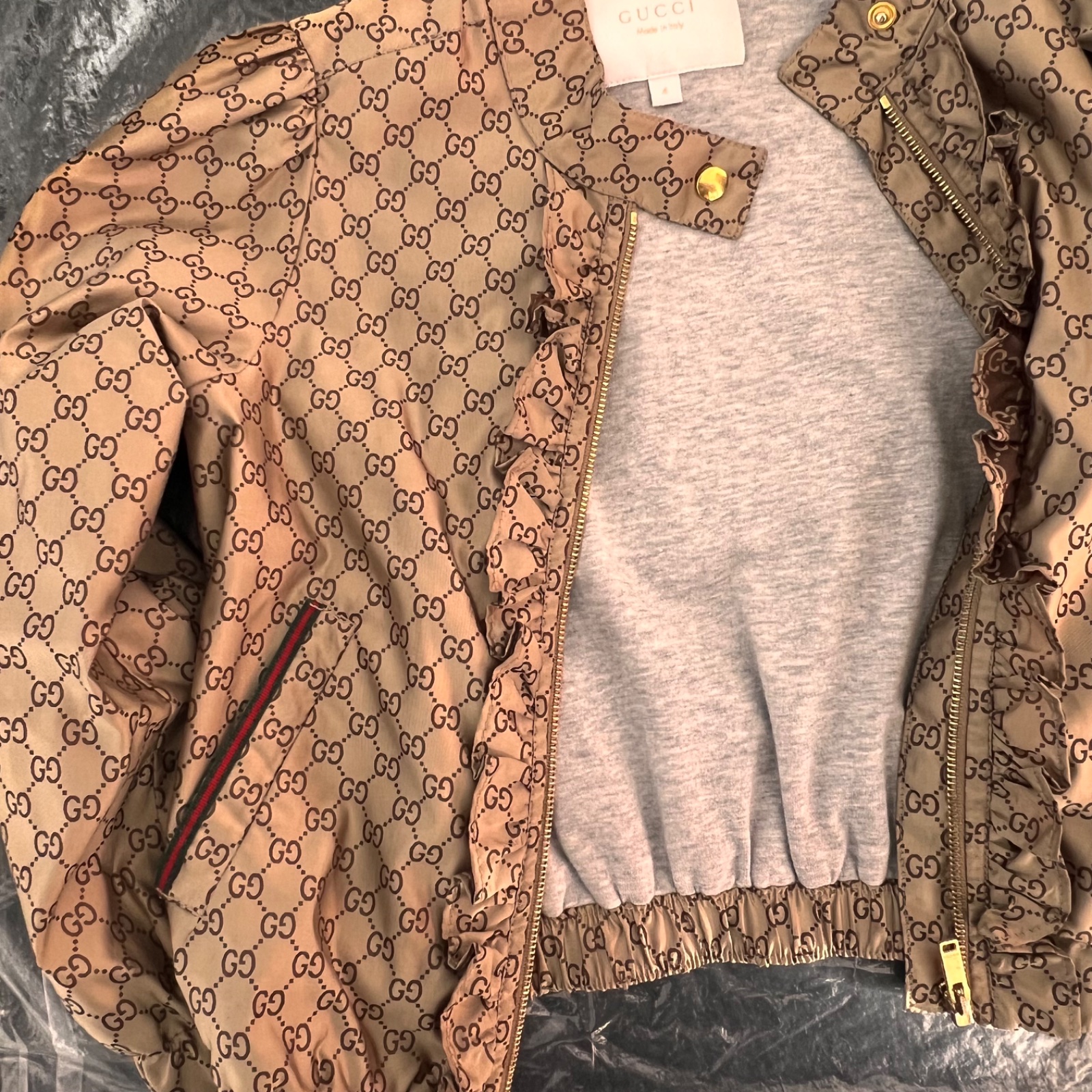 Gucci logo zlatá bunda s volánom a trikolórouGucci