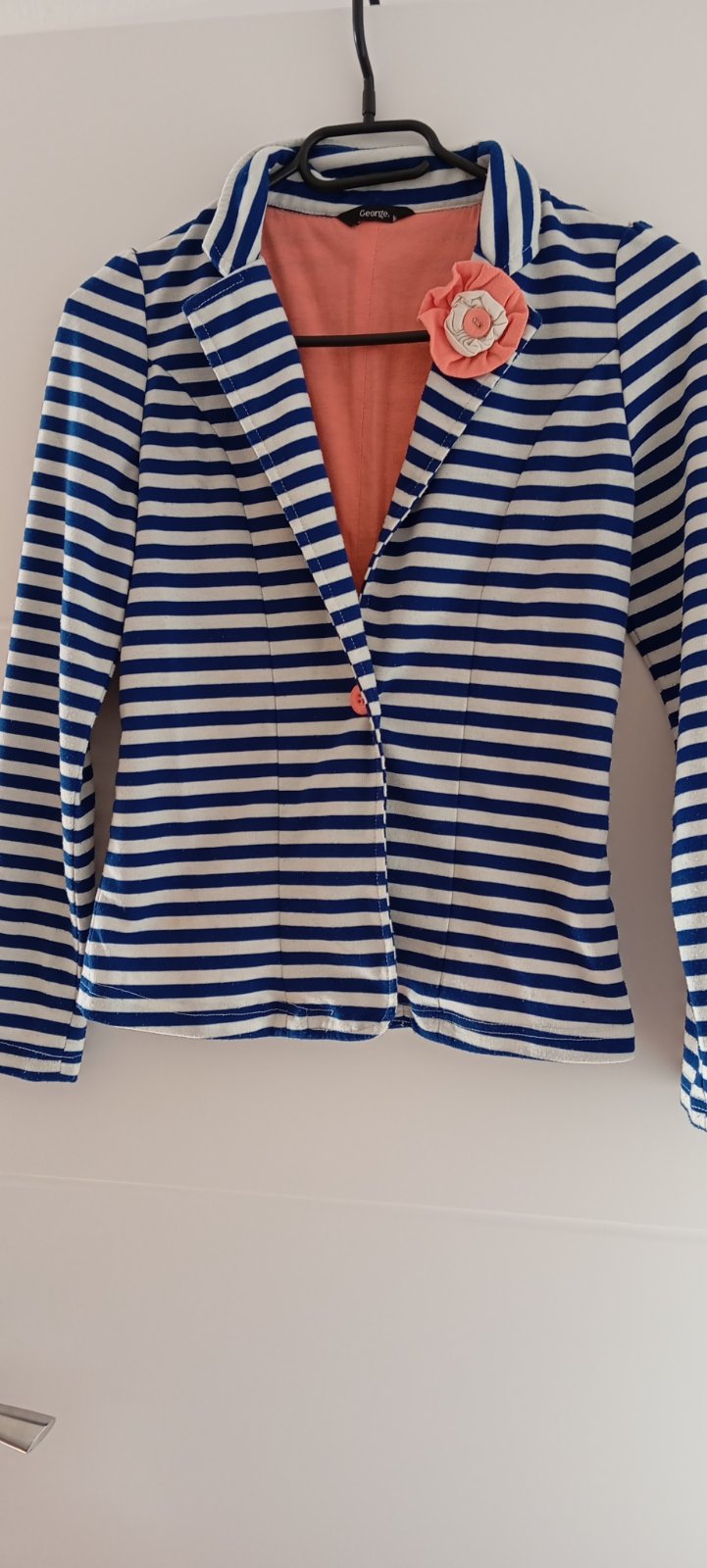 Predám sako vo výbornom stave .Materiál podobný teplakovine , pohodlné na nosenie .Celková dĺžka 53 CM,šírka 34 cm.Rukav od krku 60 cm.Sako má peknú aplikáciu v tvare kvetu na golieri . Farba ako na foto