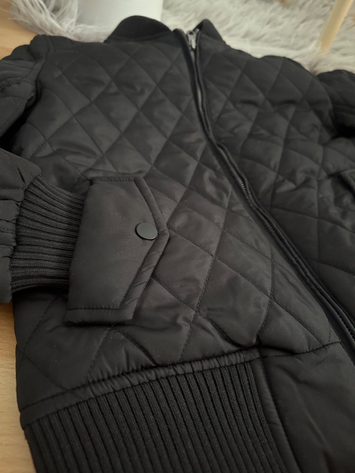 Málo používaná prešívaná bunda Zara. Rozmer dĺžka 54 CM plus kapucňa, šírka 46 CM, rukáv 59 CM, Vrecká na zips, nie je poškodená, Pc39