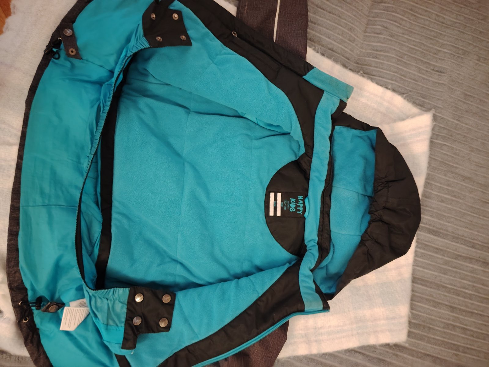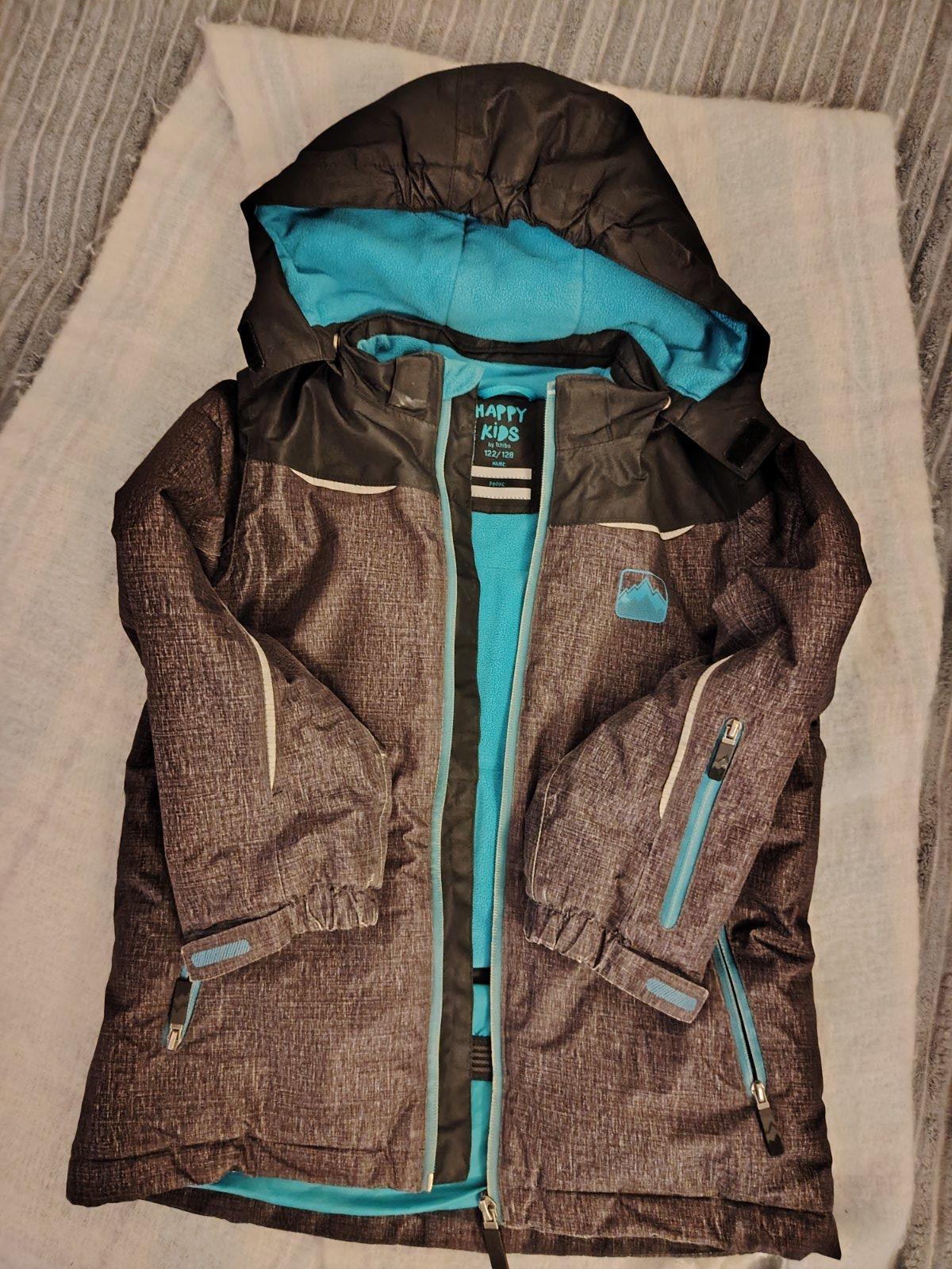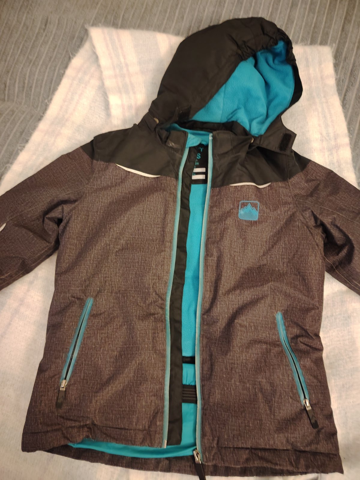 Výborná vetrovka málo nosená. Teplá. Praktické detaily, snežný pás, vrecko na skipas, super kapucňa. Č. 122-128.
