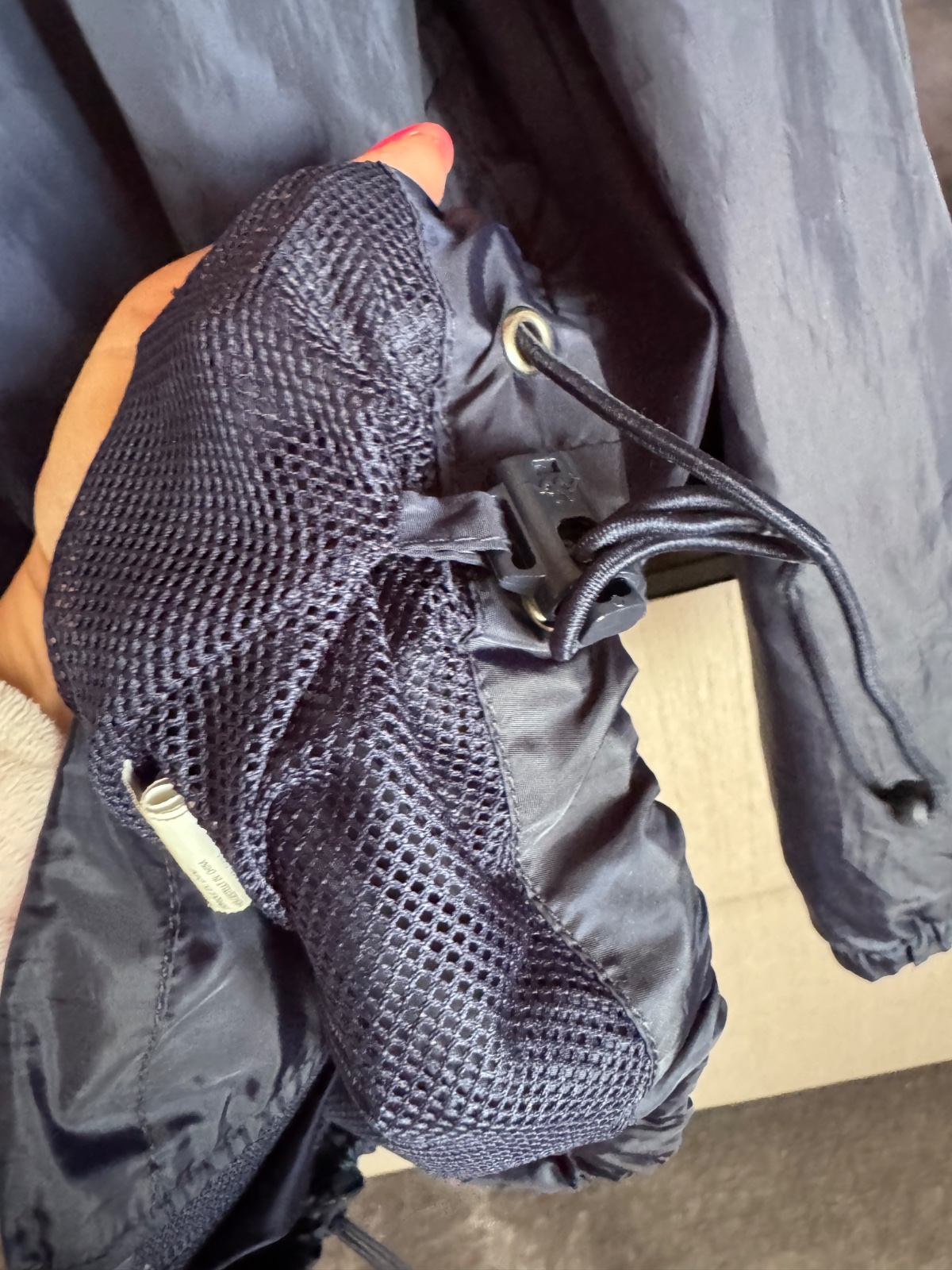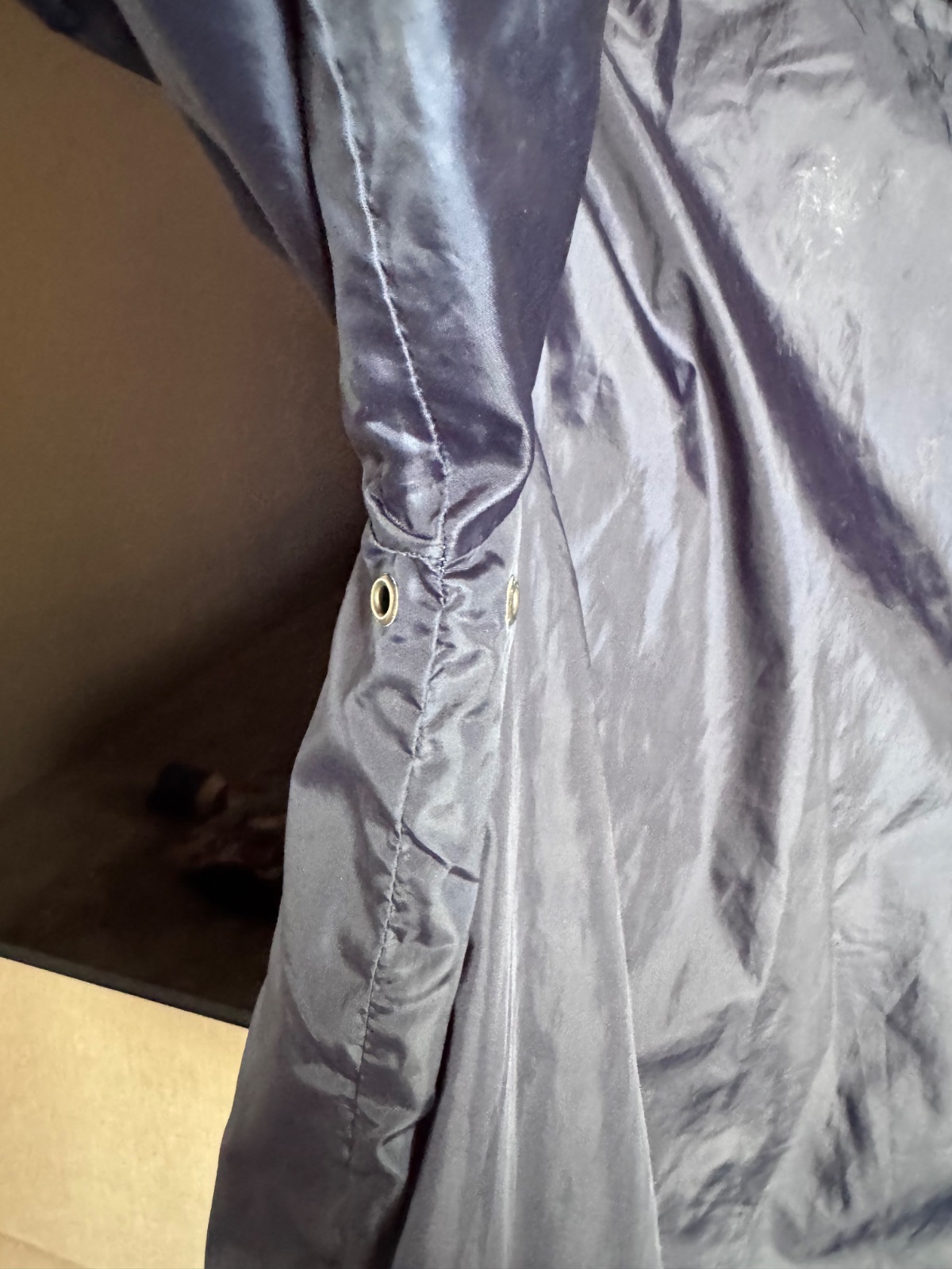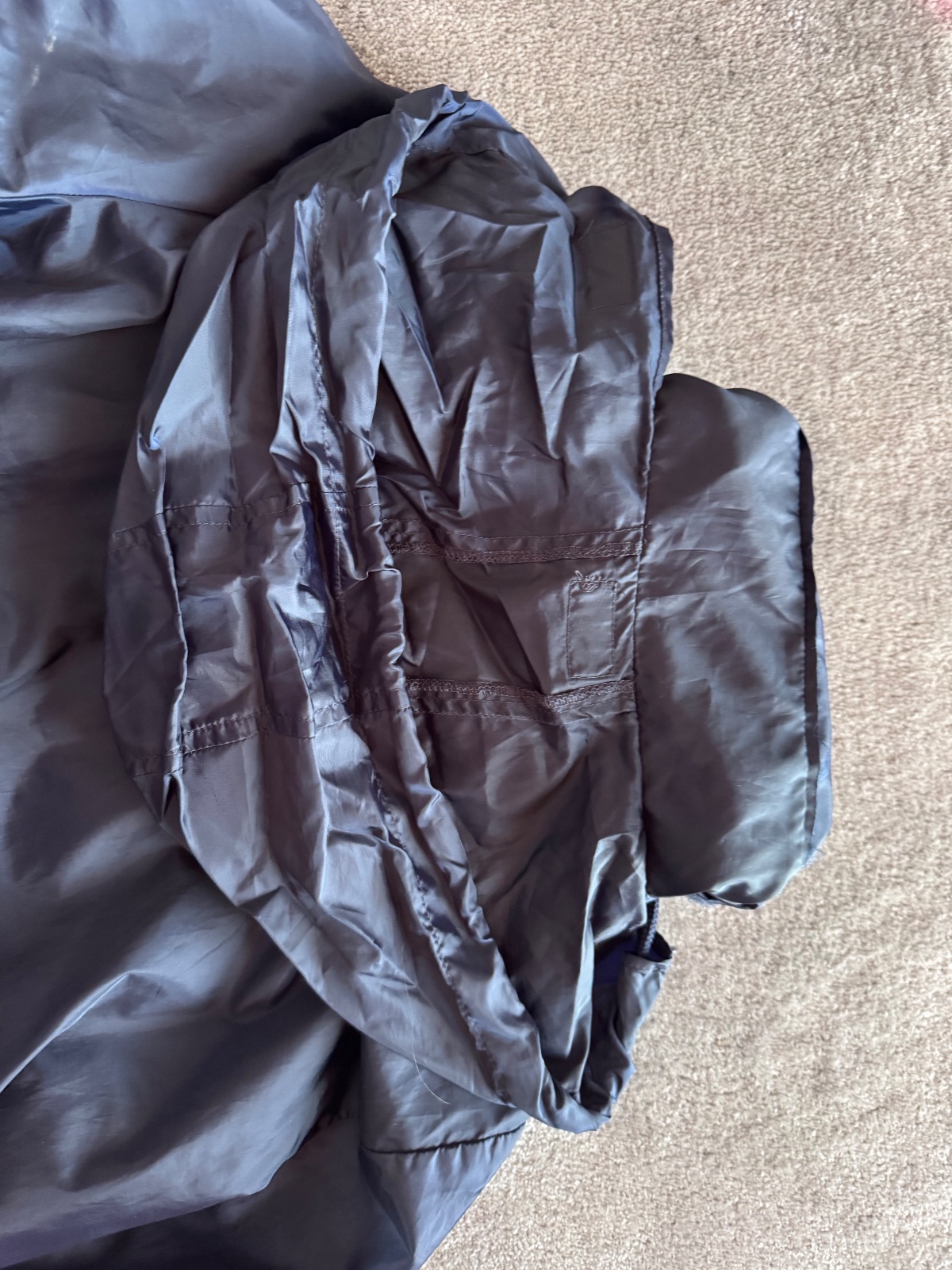 Pekný nosený stav. Dĺžka 73cm, šírka 52cm, rukav od goliera 77cm, bočné vrecka, v goliery kapucna, dole regulácia