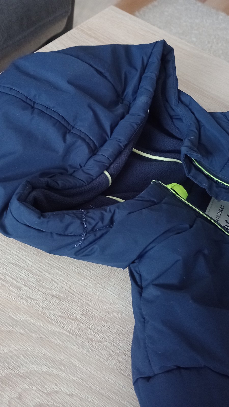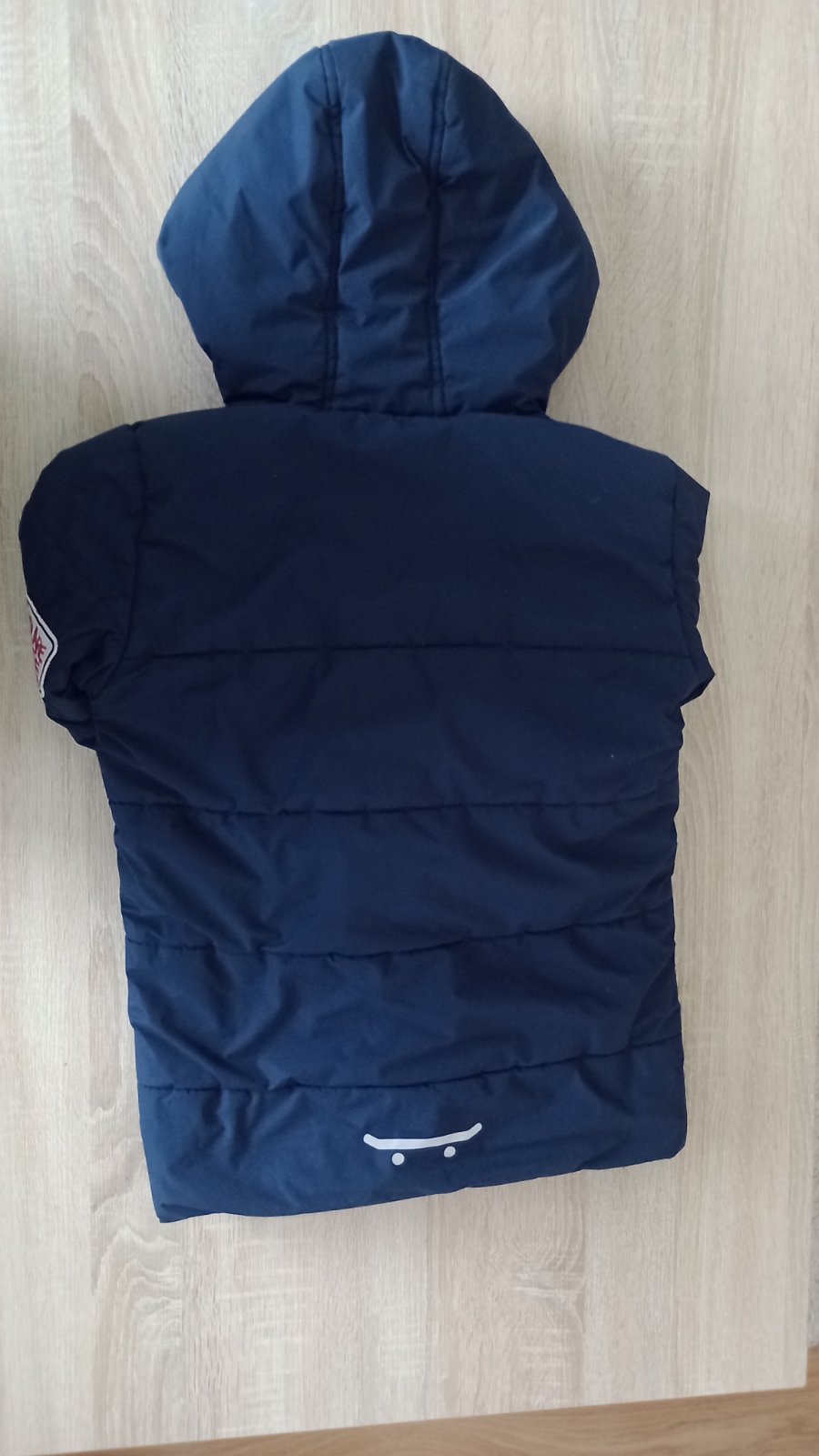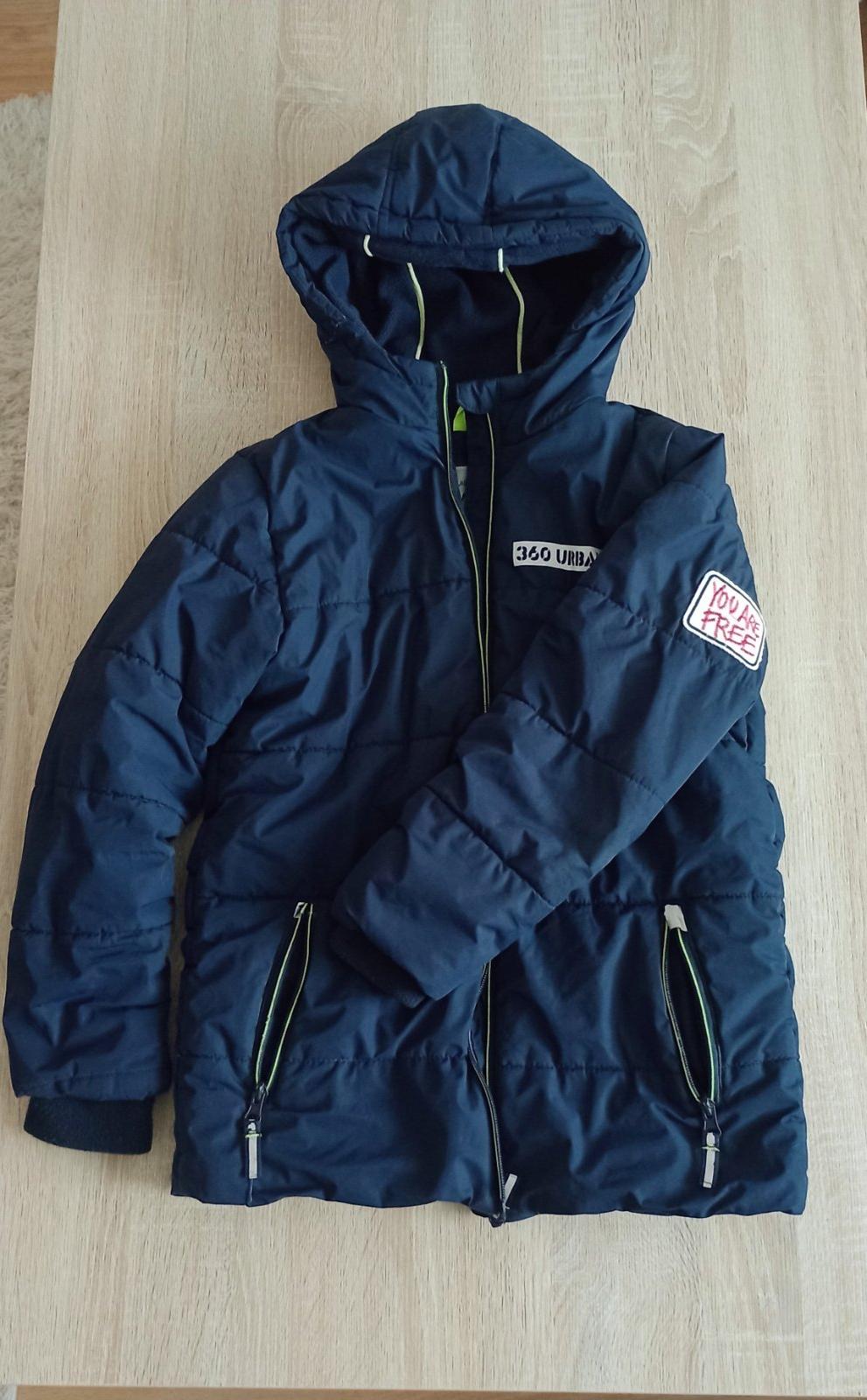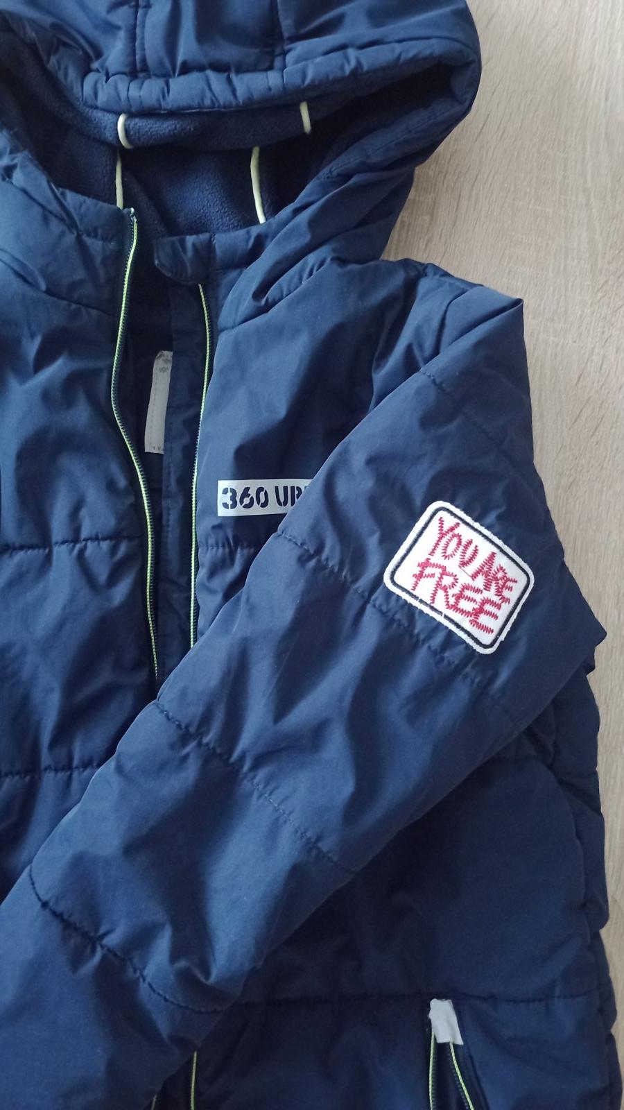 Tmavo modrá bunda s reflexnými prvkami aj vzadu.Teplá s patentami na rukávoch.Zašité miesta na fotkách,nič strašné.Zohladnené v cene.Mali sme ju radi.