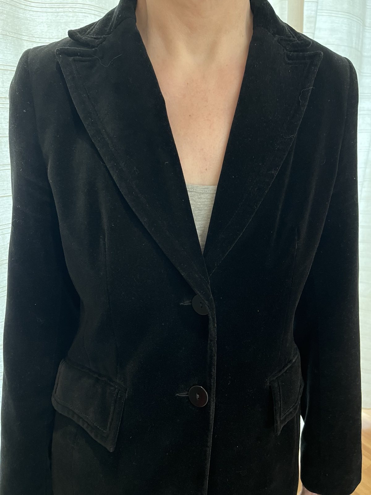 má chybičku na chrbte je uvoľnené šitie viď posledná fotka -rozmery: prsia (merané od pazuchy k pazuche): 45cm dĺžka: 46cm dĺžka rukáva: 46cm, je 3/4! -sako samo...