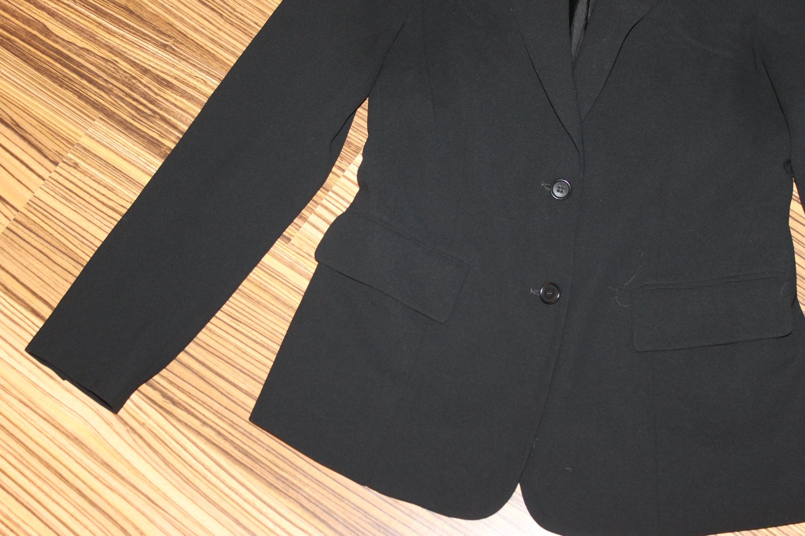 Málo nosené, v super stave bez poškodení. Pevný materiál, veľ. 42, naša 38.. RO: š 2x 47 cm, dl. 68 cm. Rukáv od krku 73/46 cm spod pazuchy. Váha 470g.
