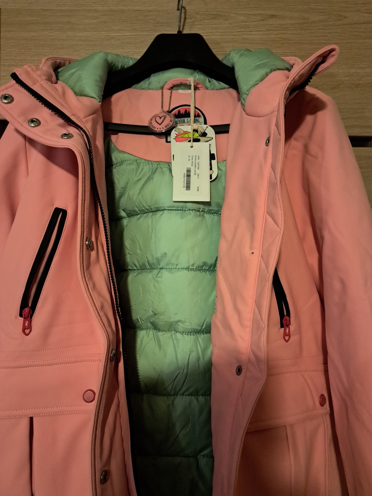 Ponukam veľmi peknú,hrejivu úplne novú vetrovku vôbec nebola nosena.V skutočnosti je veľmi pekná ružová.