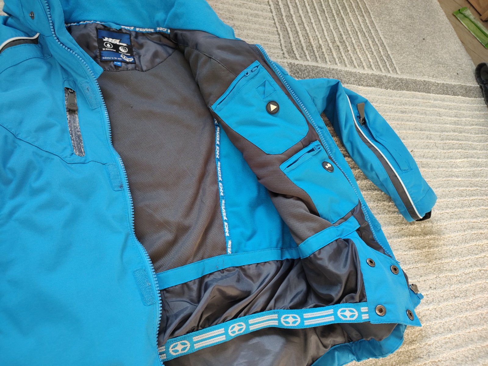 Modrozelena bunda vhodna aj na lyzovanie, velkost tam je uvedena 5-6 ale nosil to syn snad az do 8- 9 rokov od cca 7 rokov. Tych 140 je moj odhad. V pripade potreby odmeriam. Velmi dobry stav, akur...