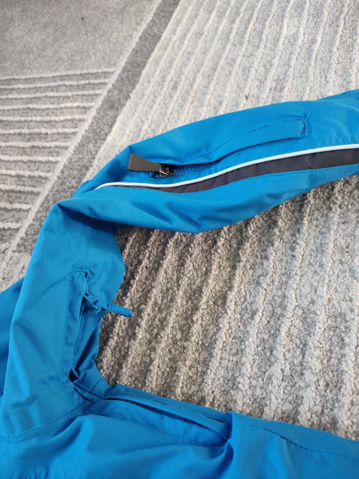 V dobrom stave. Okolo zipsov a potlač na rukáve sa trochu odlupuje. Kapucňa odnímateľná, pás proti snehu. Dĺžka 58 CM od krku dolu, rukáv 51cm. Cena 6€ + poštovné Slovenská pošta, osobný odber Nové Zámky.