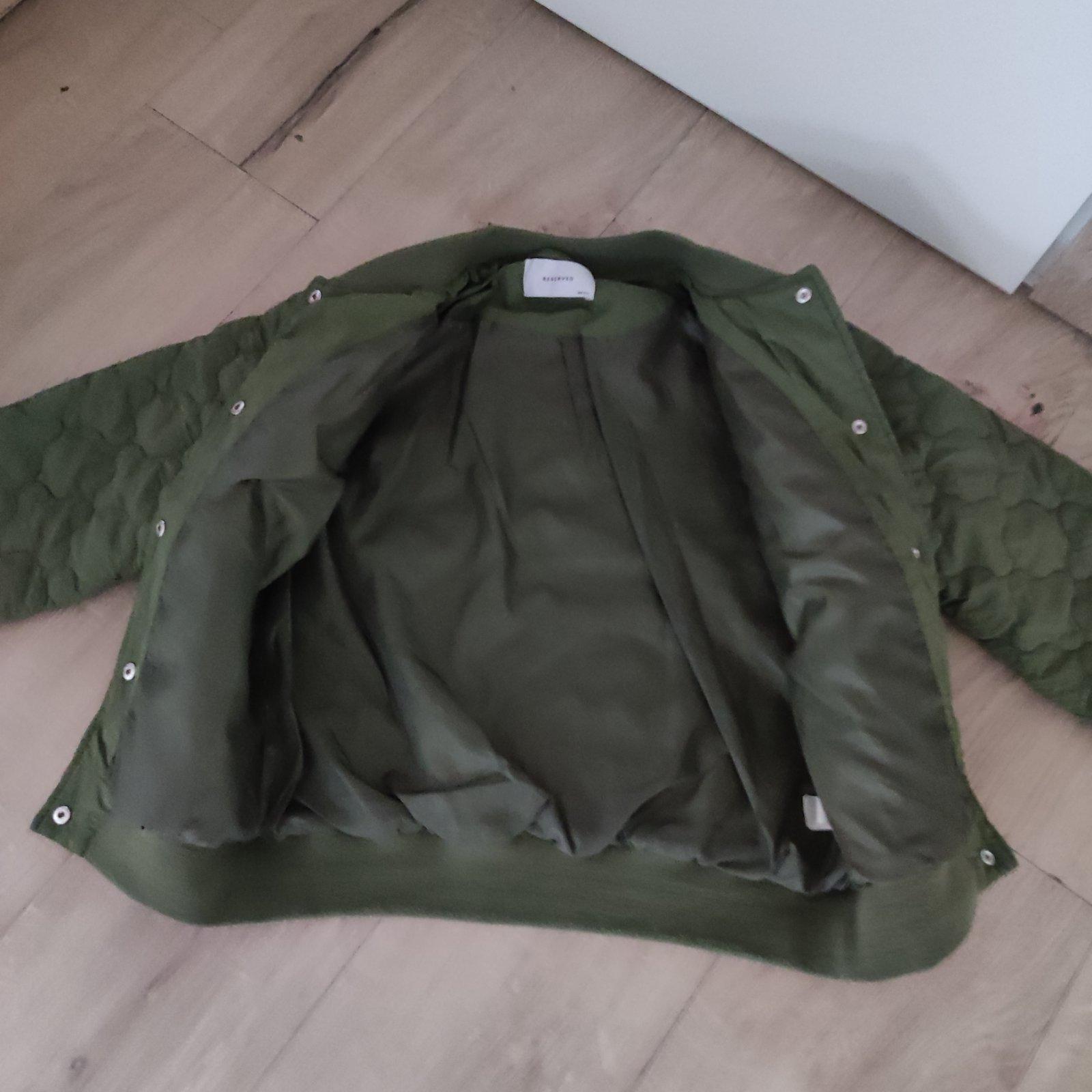 V super stave,žiadne poškodenia,nosená na striedačku s ďalšími troma bundami,dĺžka bundy 51 cm,šírka pod pazuchami 46 krát dva ,rukáv meraný od pleca 52 cm