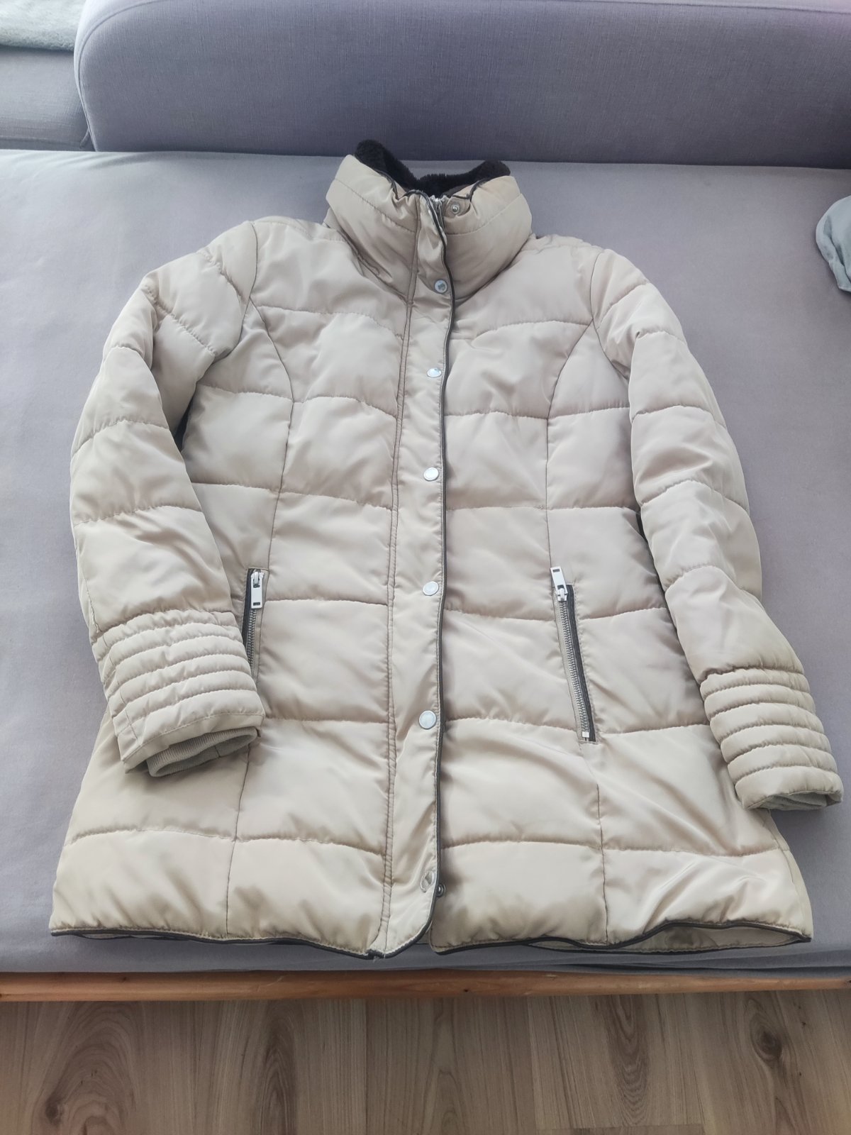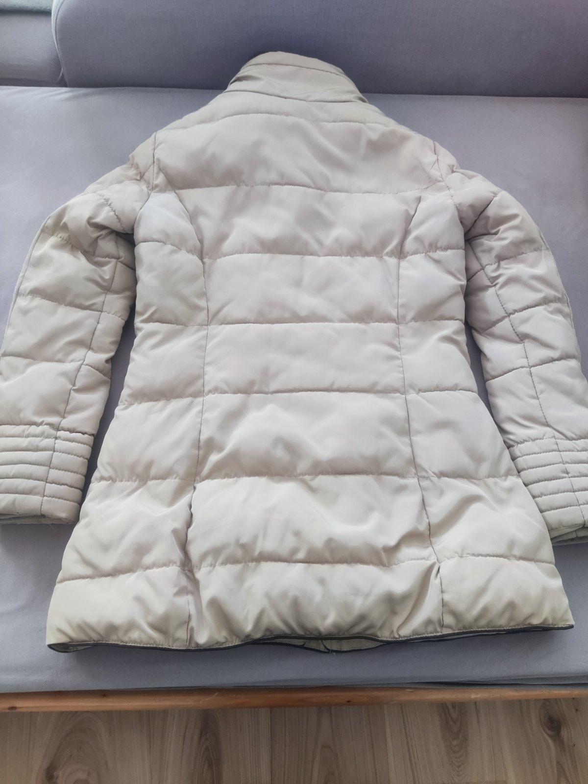 Vatovaná vetrovka, veľ.40 (M). Pôvodne kúpená v Peek&Cloppenburg. Teplá, super vysoký, teplý golier. Dve vrecká na zips vonku, jedno vnútorné vrecko na zips. Má malé fľaky.