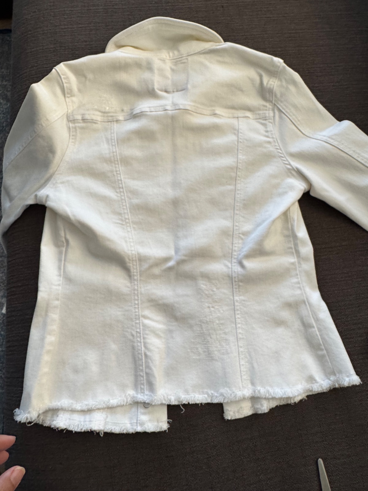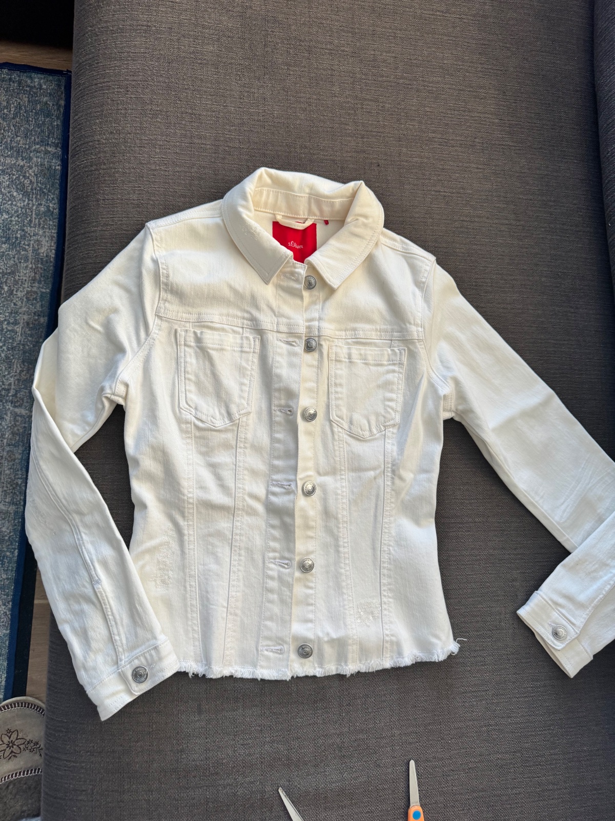 Top stav ako nová. Perfektný zužujúci strih. Materiál je mäkký denim. Naťahovací. Je veľmi kvalitne ušitá. Spodok je ako keby rozstrapkaný a má na niektorých miestach flitre veľmi nenápadné
