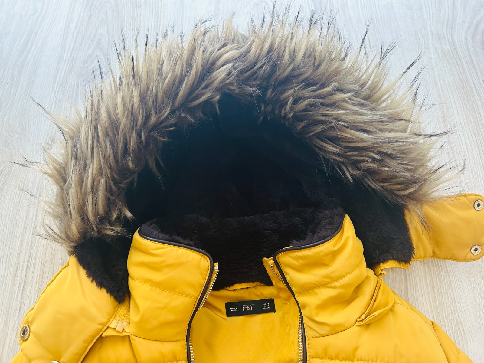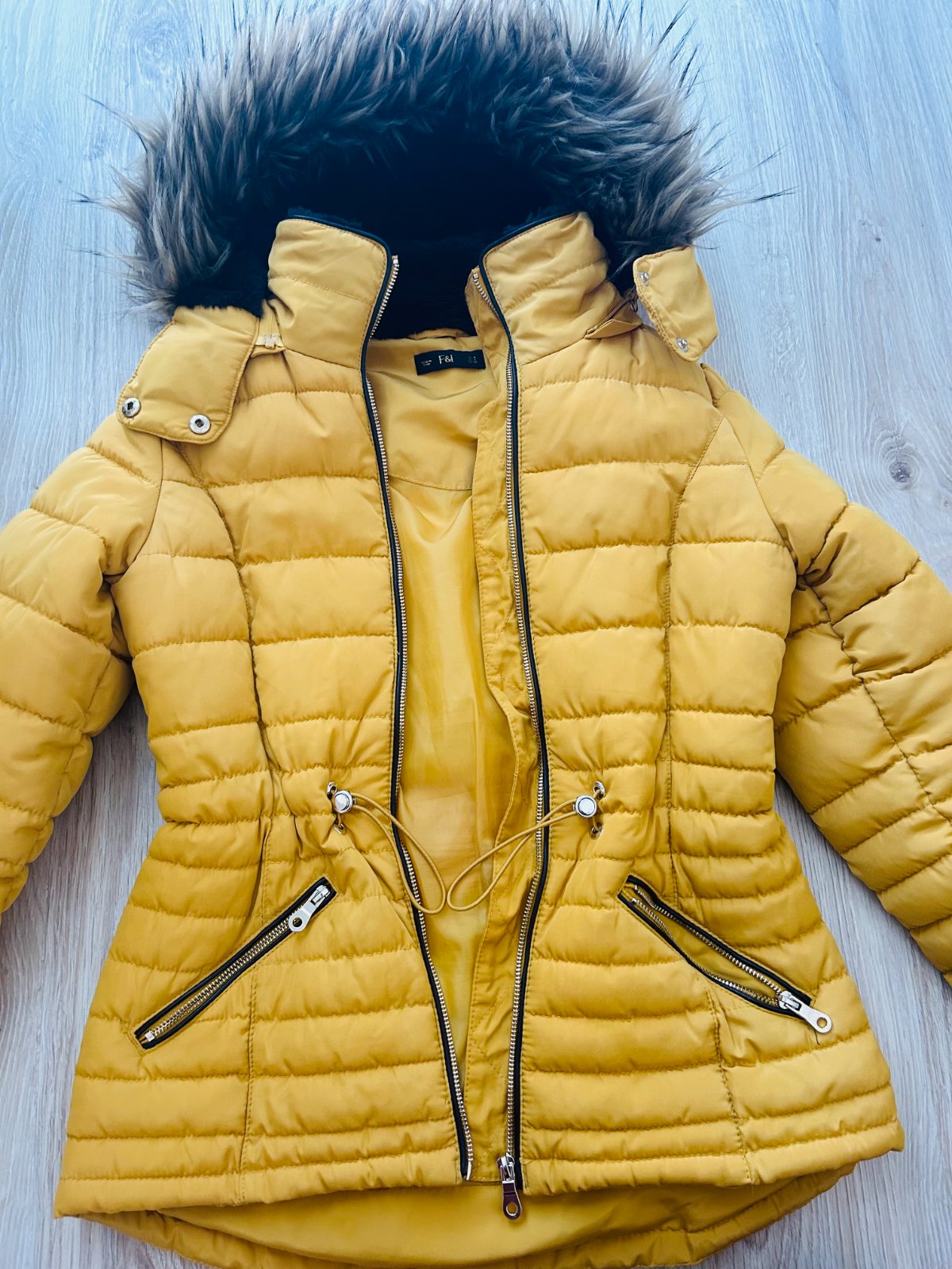 Predám túto nádhernú teplučkú zimnú prešívanú bundu značky F&F vo veľkosti S, ale sedí aj na M. Bunda je krásna a kvalitná, vpredu s funkčnými vačkami, s bohatou kožušinkou na kapucni. Bola iba 1x oblečená, je v top stave. Kupovaná za 50 EUR.