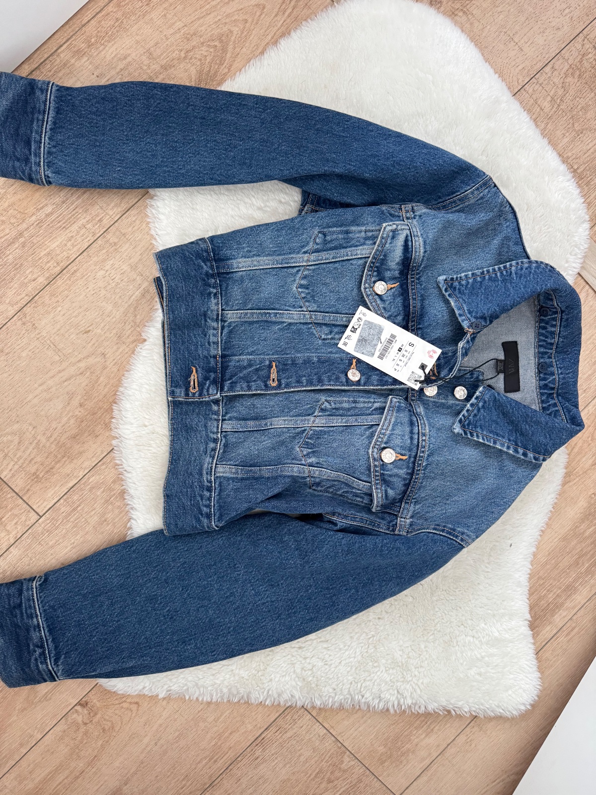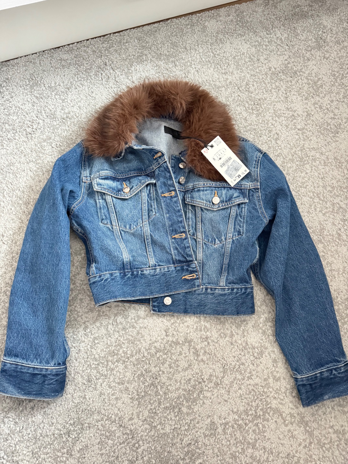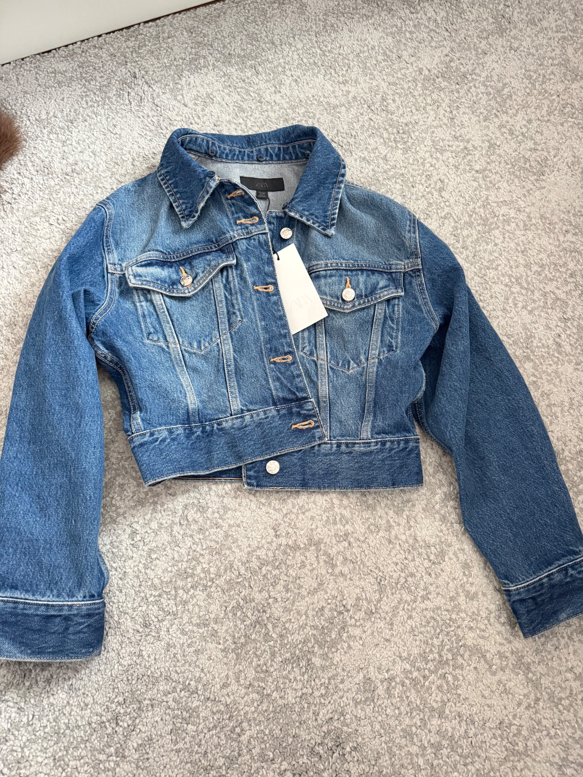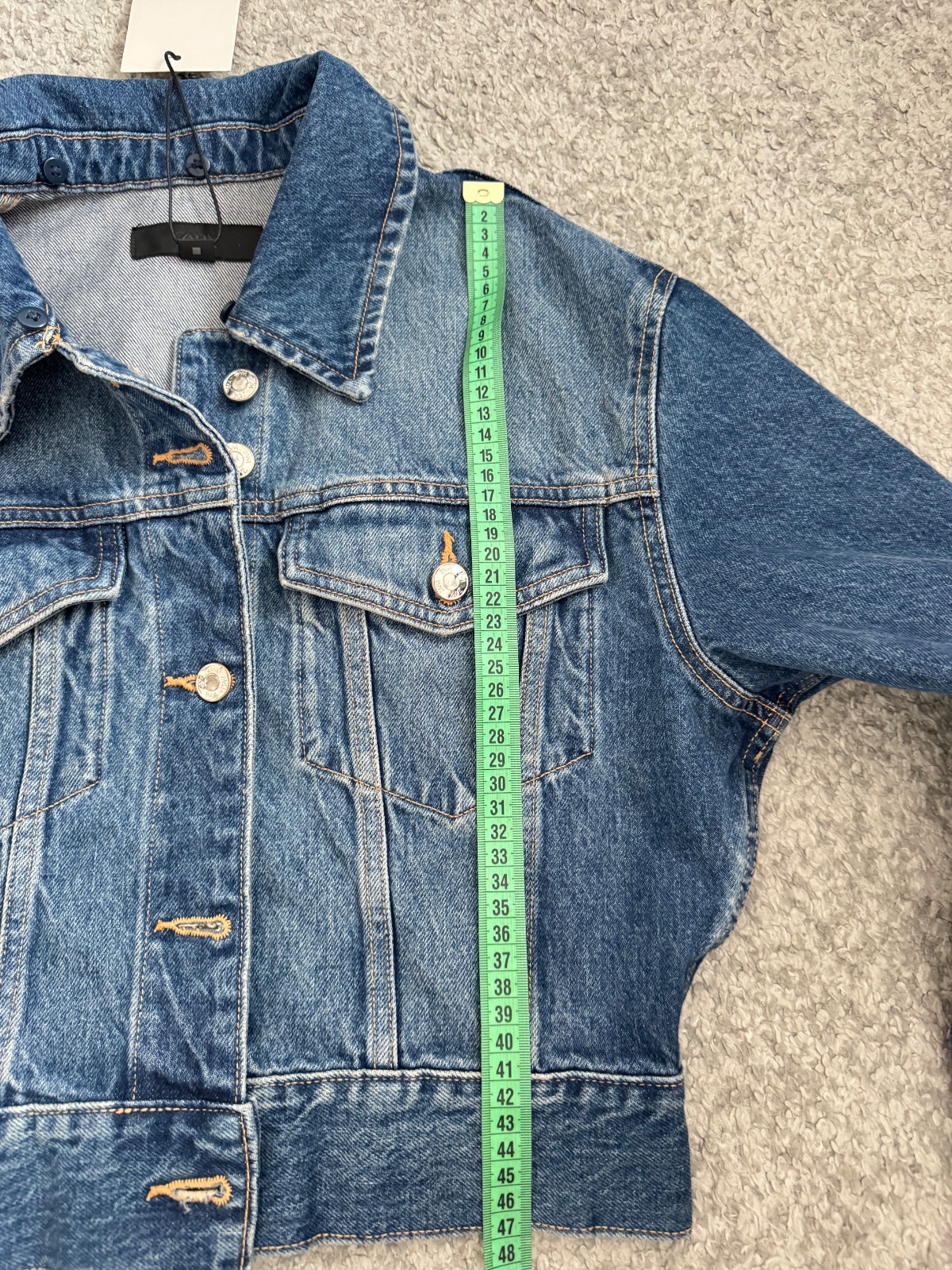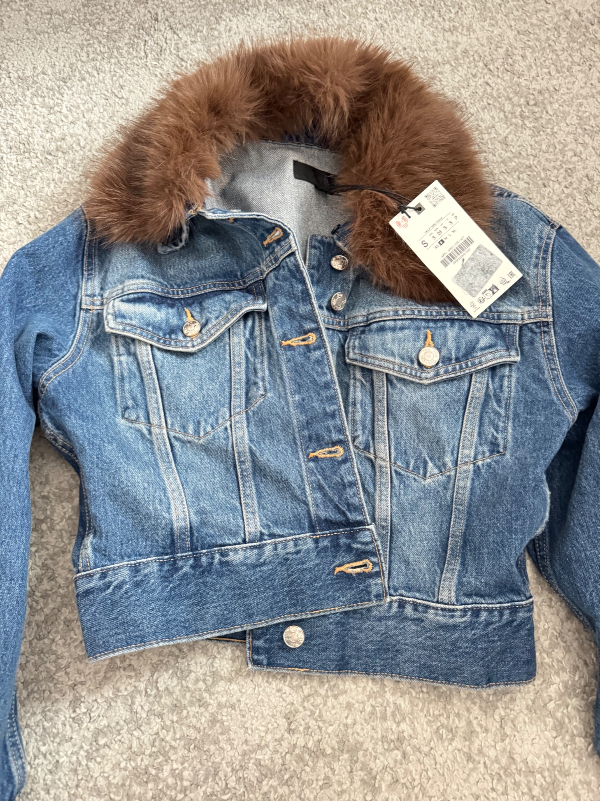 Prechodná semišová bunda na viacero spôsobov nosenia. Veľkosť S. Dĺžka 56 cm a prsia 41 cm.