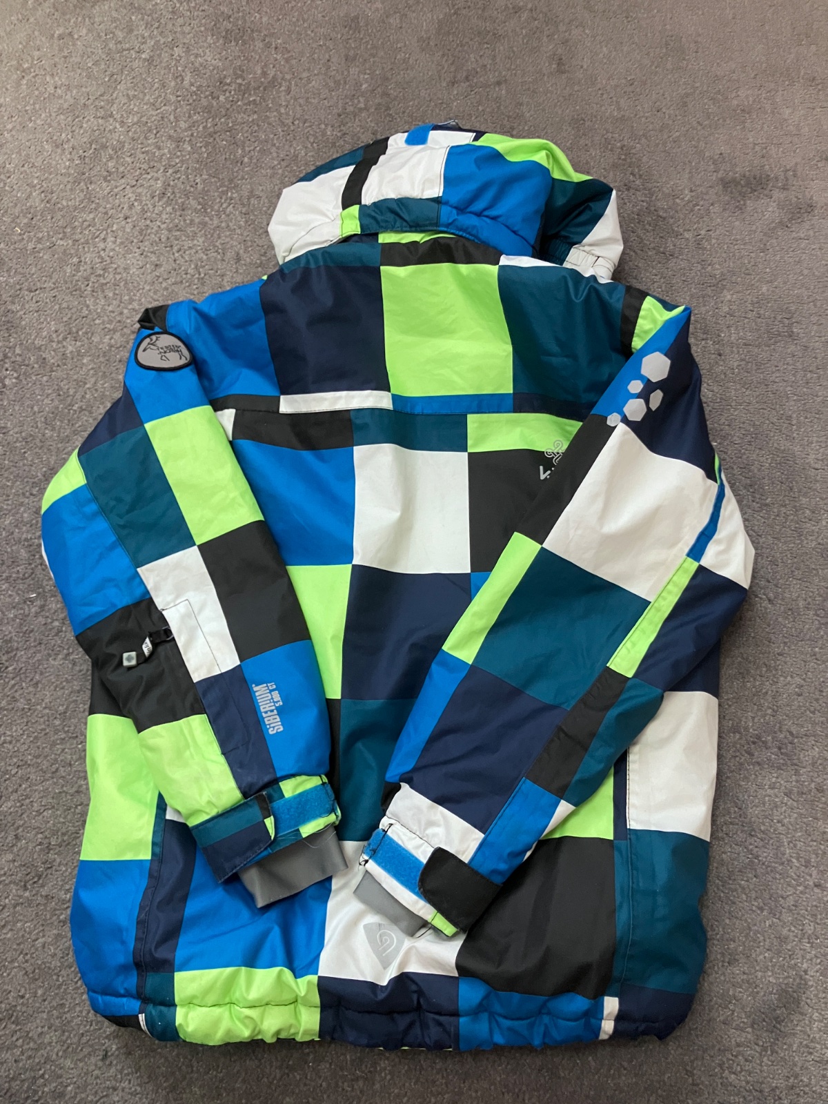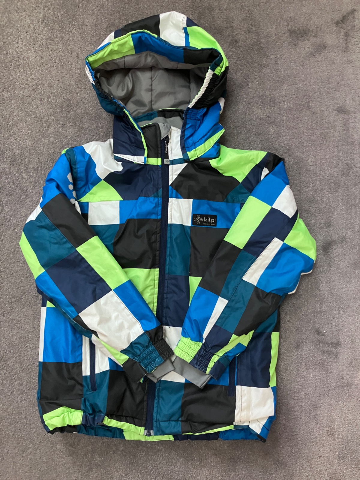 Vodný stĺpec 5.000, vnutri má snežný pás, na rukáve vrecko na skipas, kapuca sa dá odopnúť.