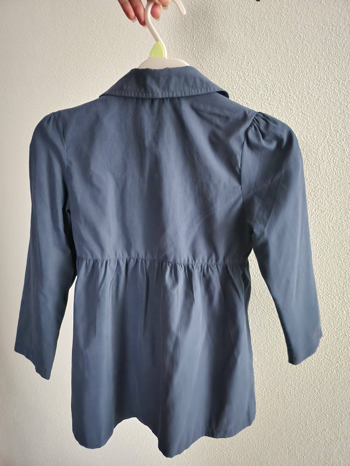 Je tmavomodry len fotka na svetle vyzera blede...dlhy 60,, rukav od krku 52,, pod pazuchami ,hruba 34,5