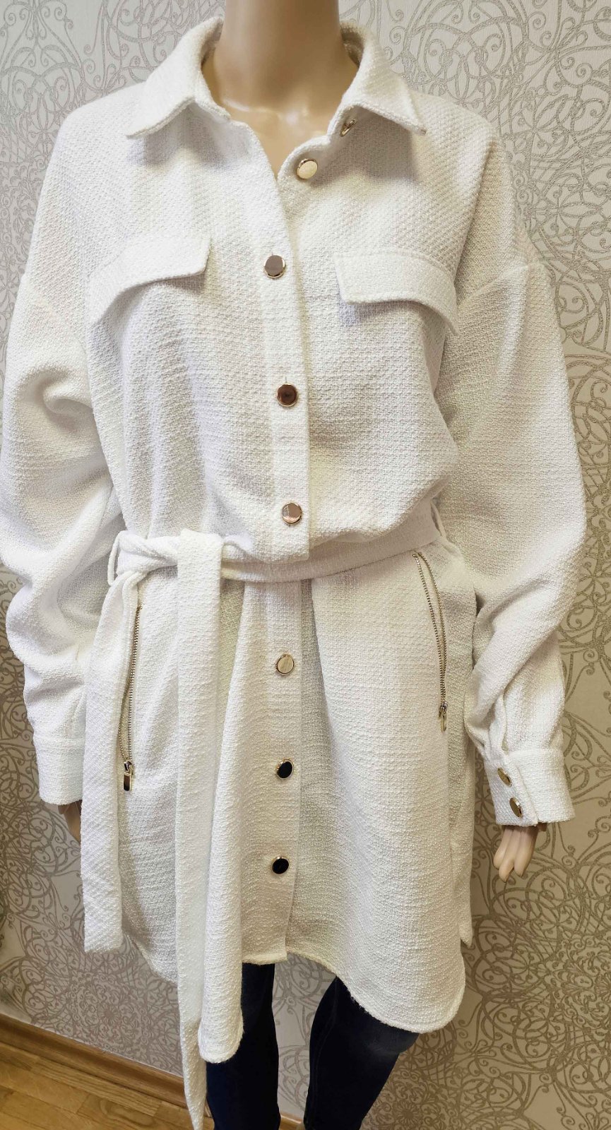 Výborný stav, takmer nový. Dĺžka 92 cm, dĺžka rukáva od krku 80 cm, šírka v hrudníku 56x2 cm. Príjemný hrejivý materiál.