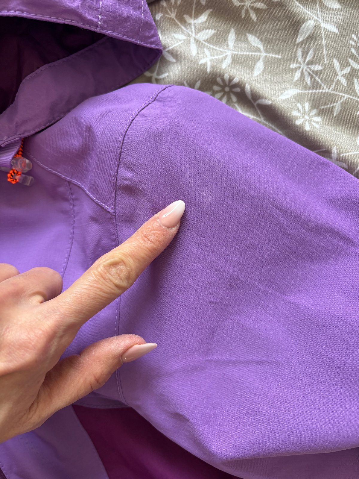 Krasny stav. Oblecena par krat. Dcera z nej vyrastla. Na ramene bleducky fliacik ( vid foto). Vidno ho iba zblizka. Velkost uvedena S ale je mensia, uzsia, preto uvadzam XS.