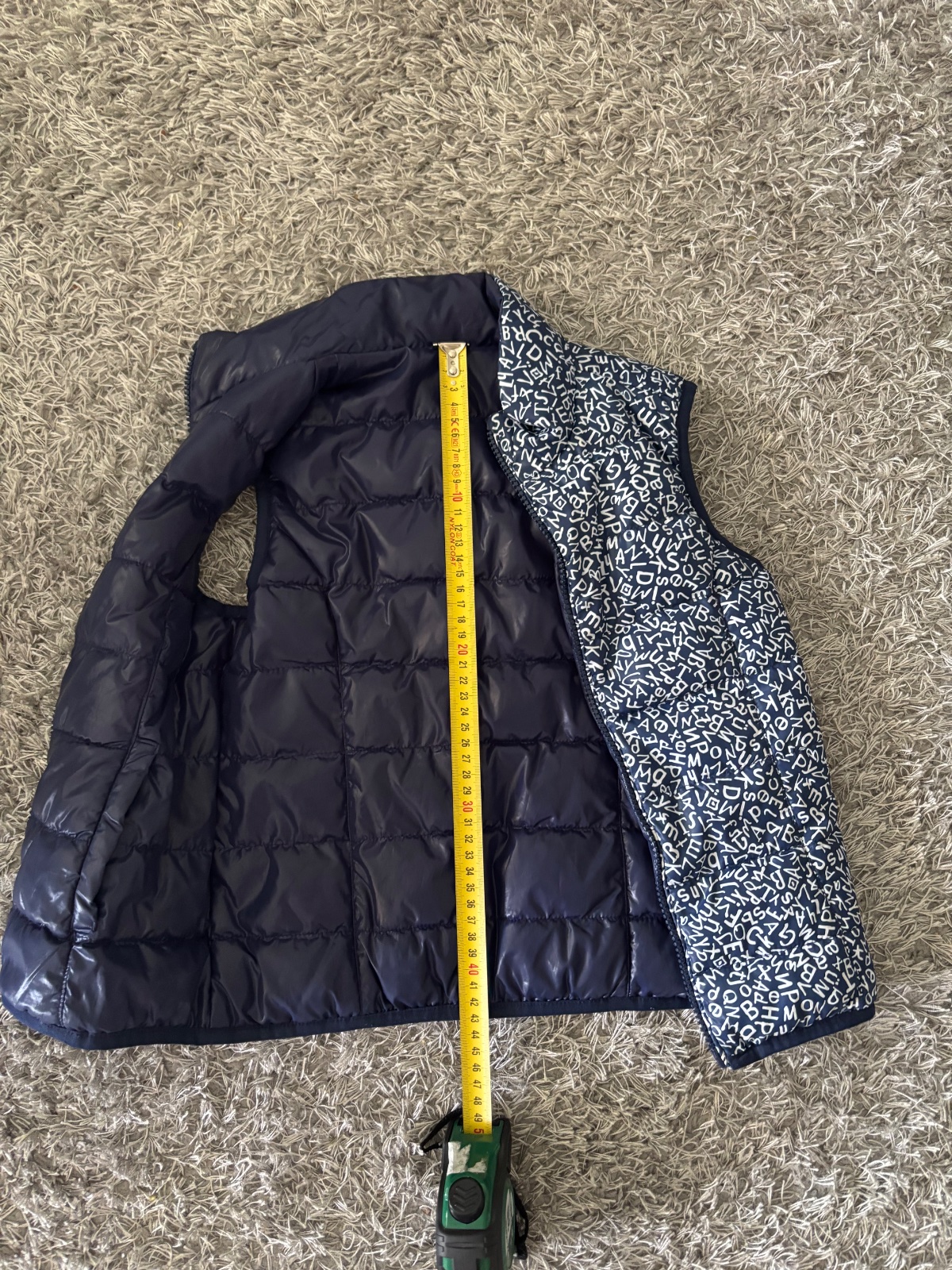 Dievčenská vesta obojstranná, pismenková a aj tmavomodrá vo veľkosti 116. Málo použivaná, v dobrom stave. Cena 10 Eur plus poštovné. Posielam po pripísaní finančných prostriedkov na účet.