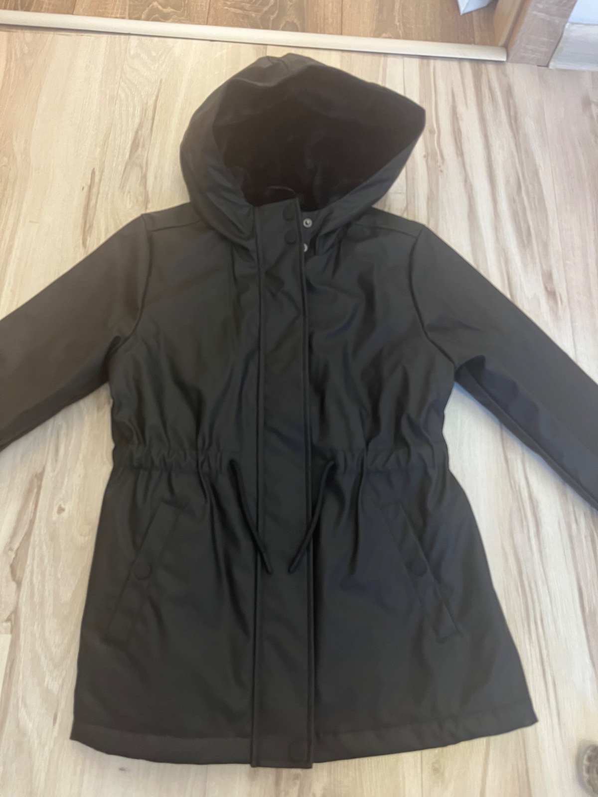 Predám pár krát oblečený , top stav , nepoškodený kabát , vhodný aj do dažďa , zateplený . V páse guma na sťahovanie