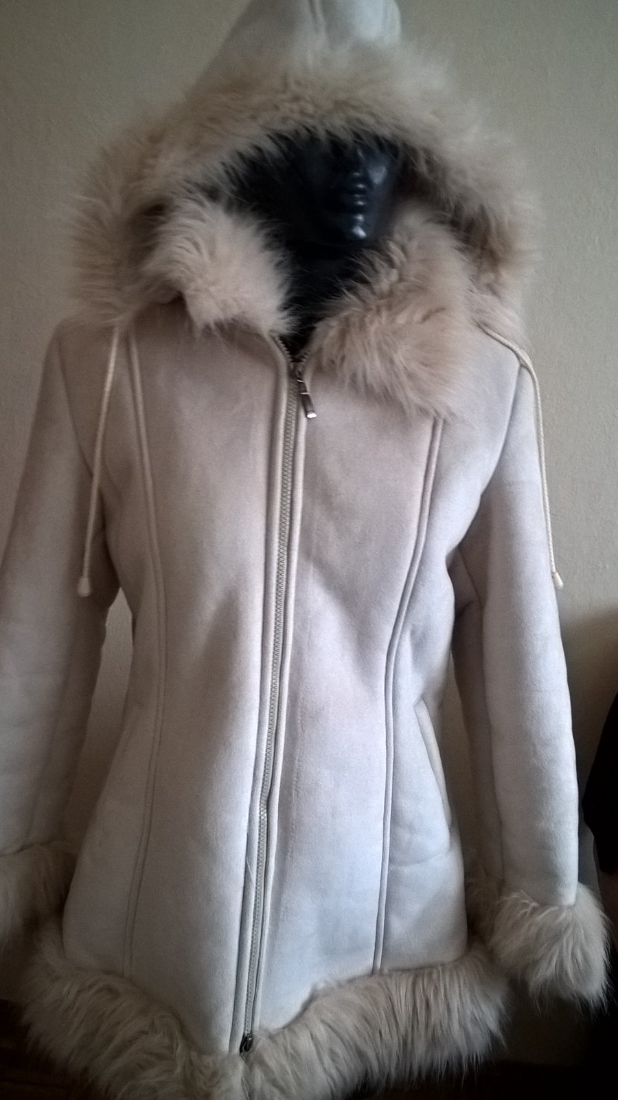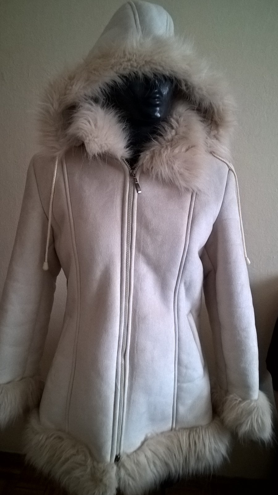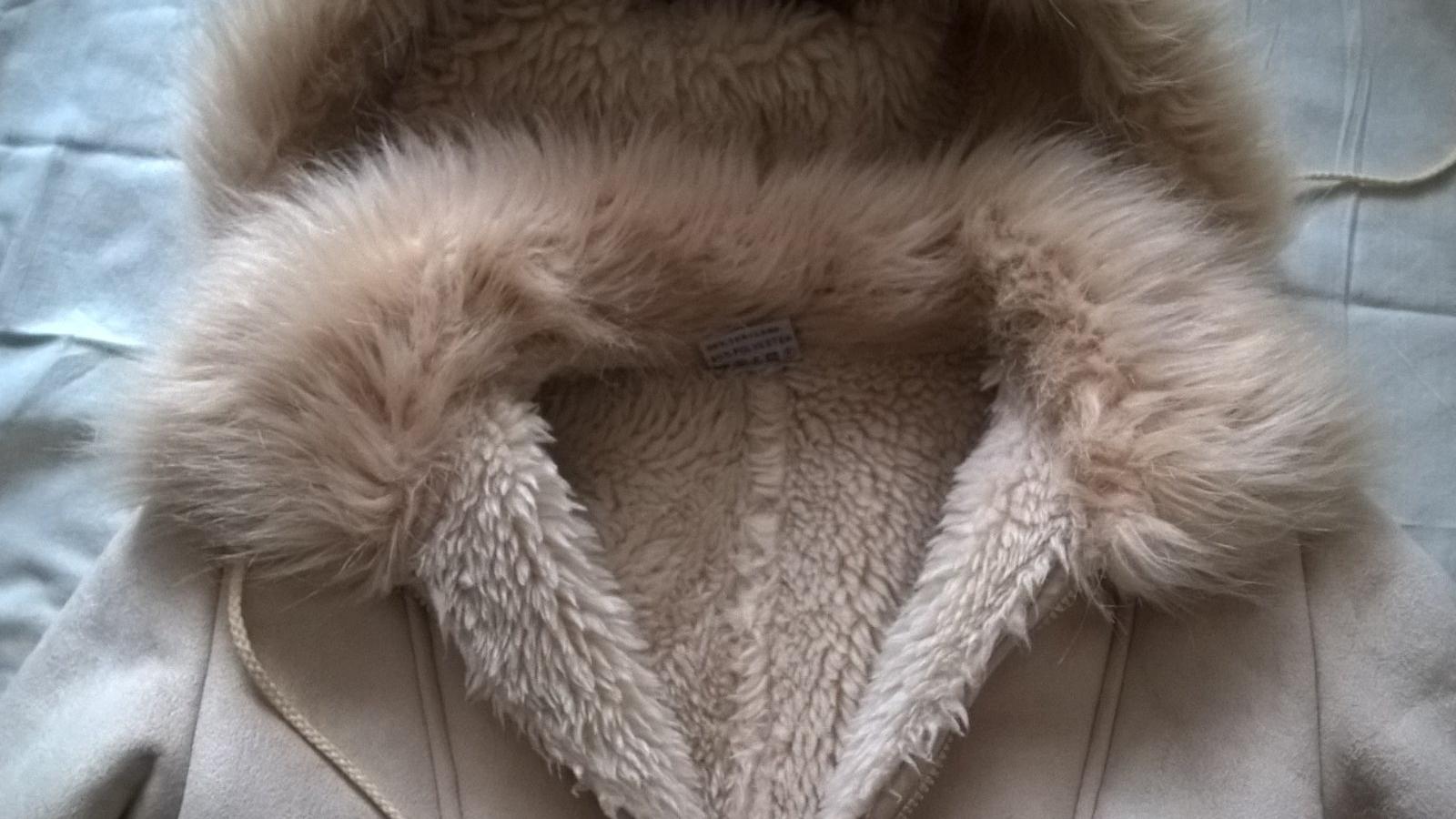 biely teplý kožúšok kapuca sa dá odnímať zapínanie na zips bez poškodenia