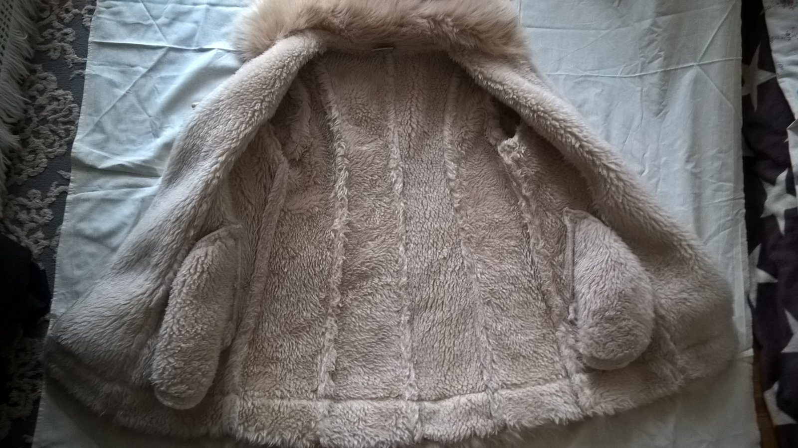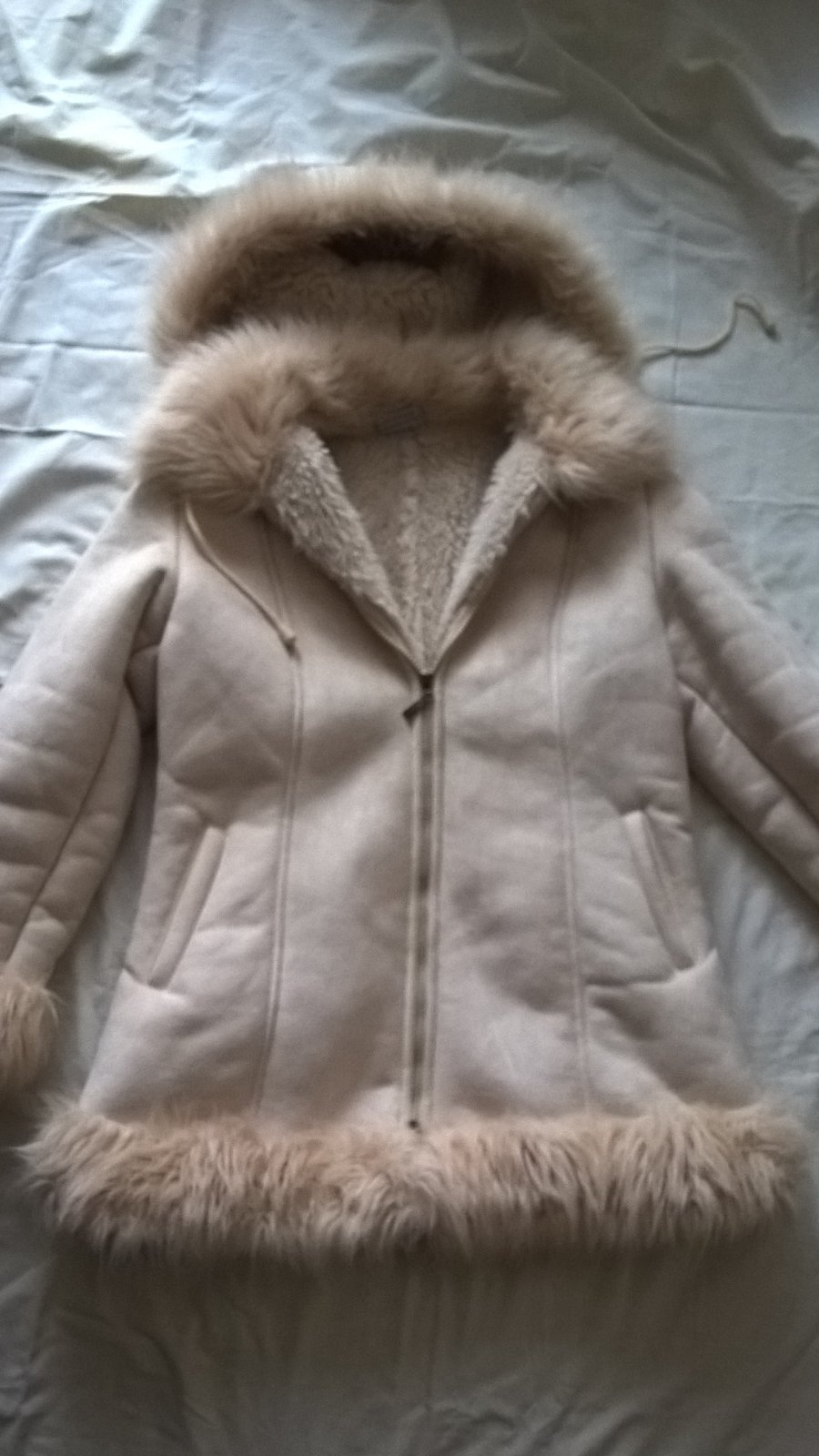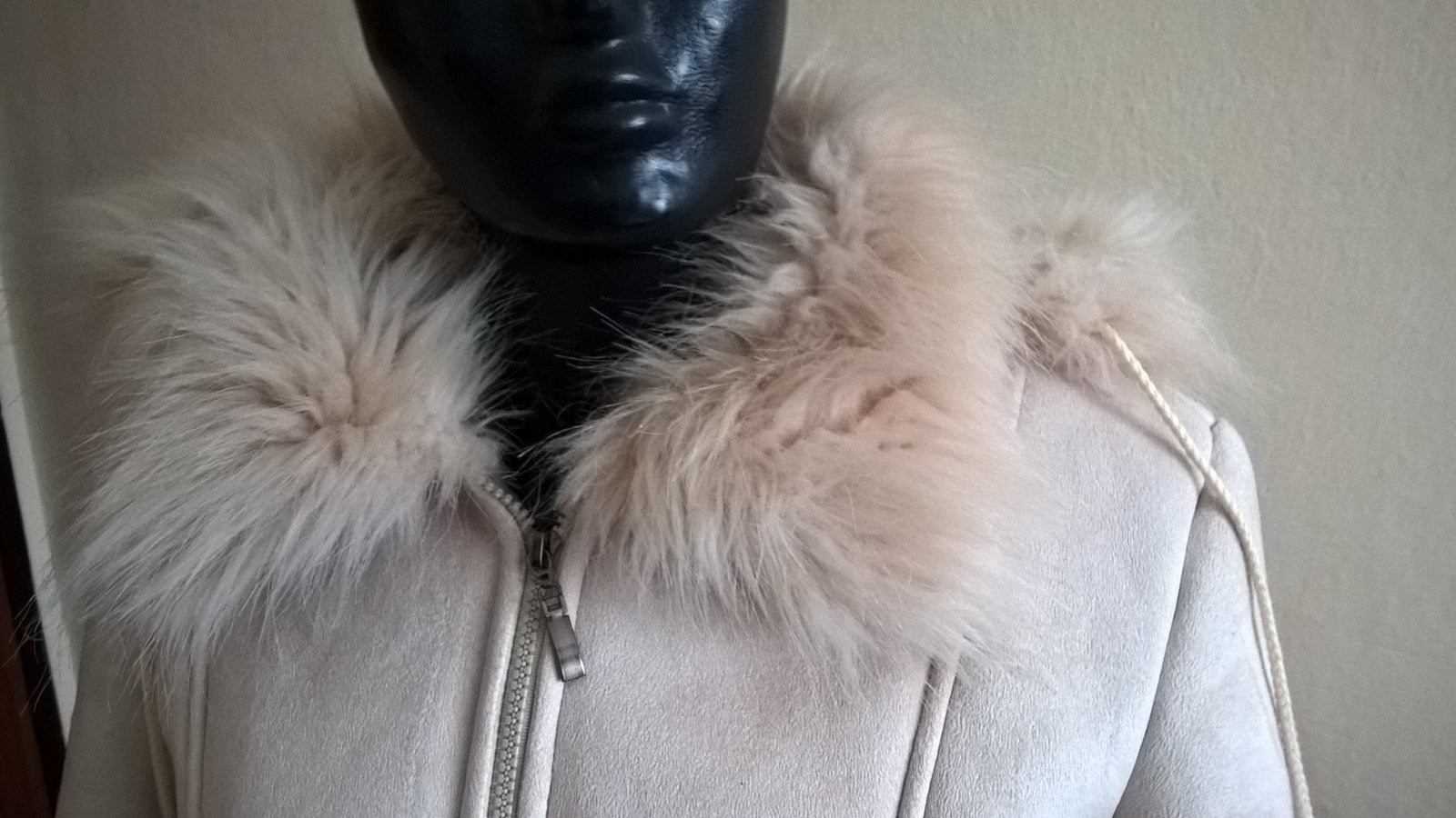 biely teplý kožúšok kapuca sa dá odnímať zapínanie na zips bez poškodenia