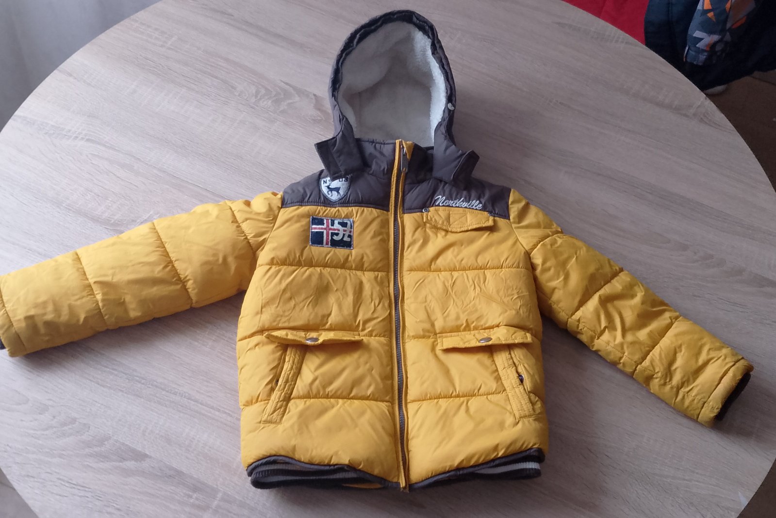 Bundička je v dobrom nosením stave, bez poškodenia- len pútko na zavesenie treba prišiť... Zvnútra podšitá, teplá...
