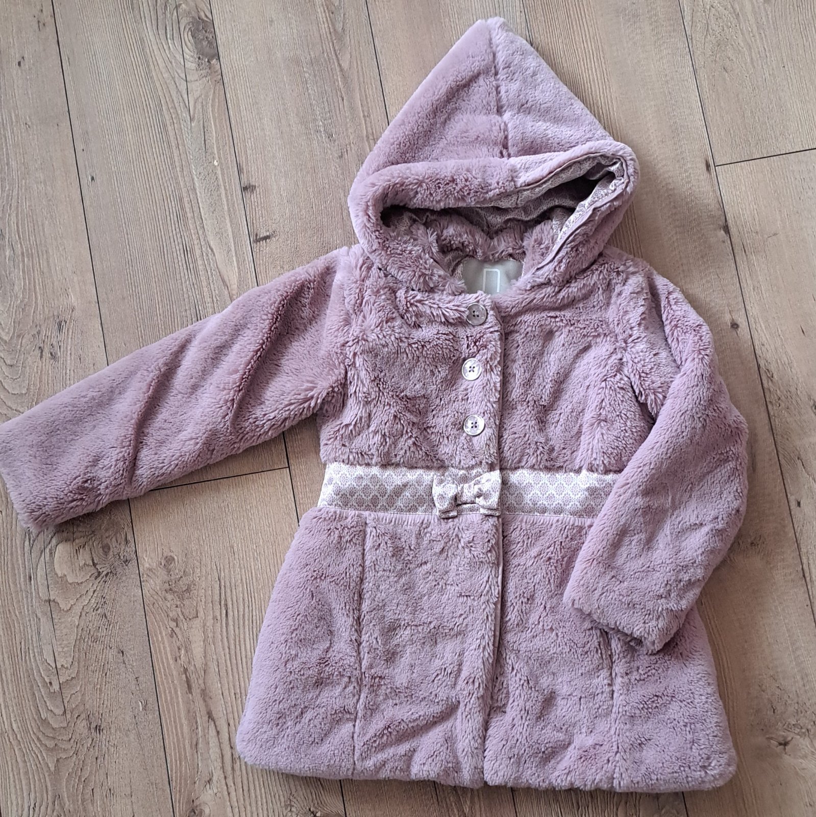 Ponúkam krásny, huňatý kabátik, zn. Name it, vel. 104/12€. Odnímateľná kapucňa, zapínanie na cvoky. Krásny detail mašle na prednej strane.