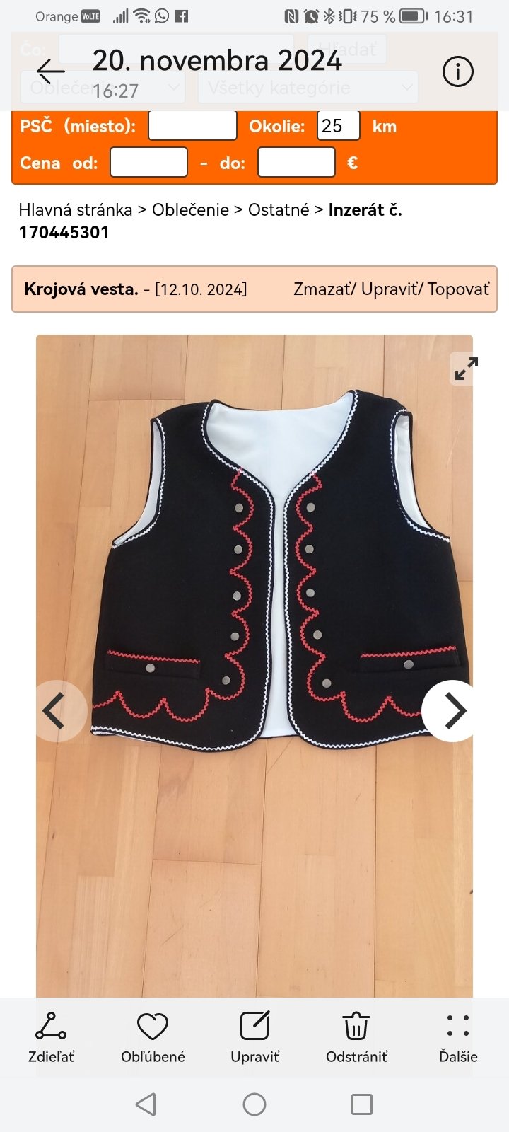 Predám folklornu vestu.
