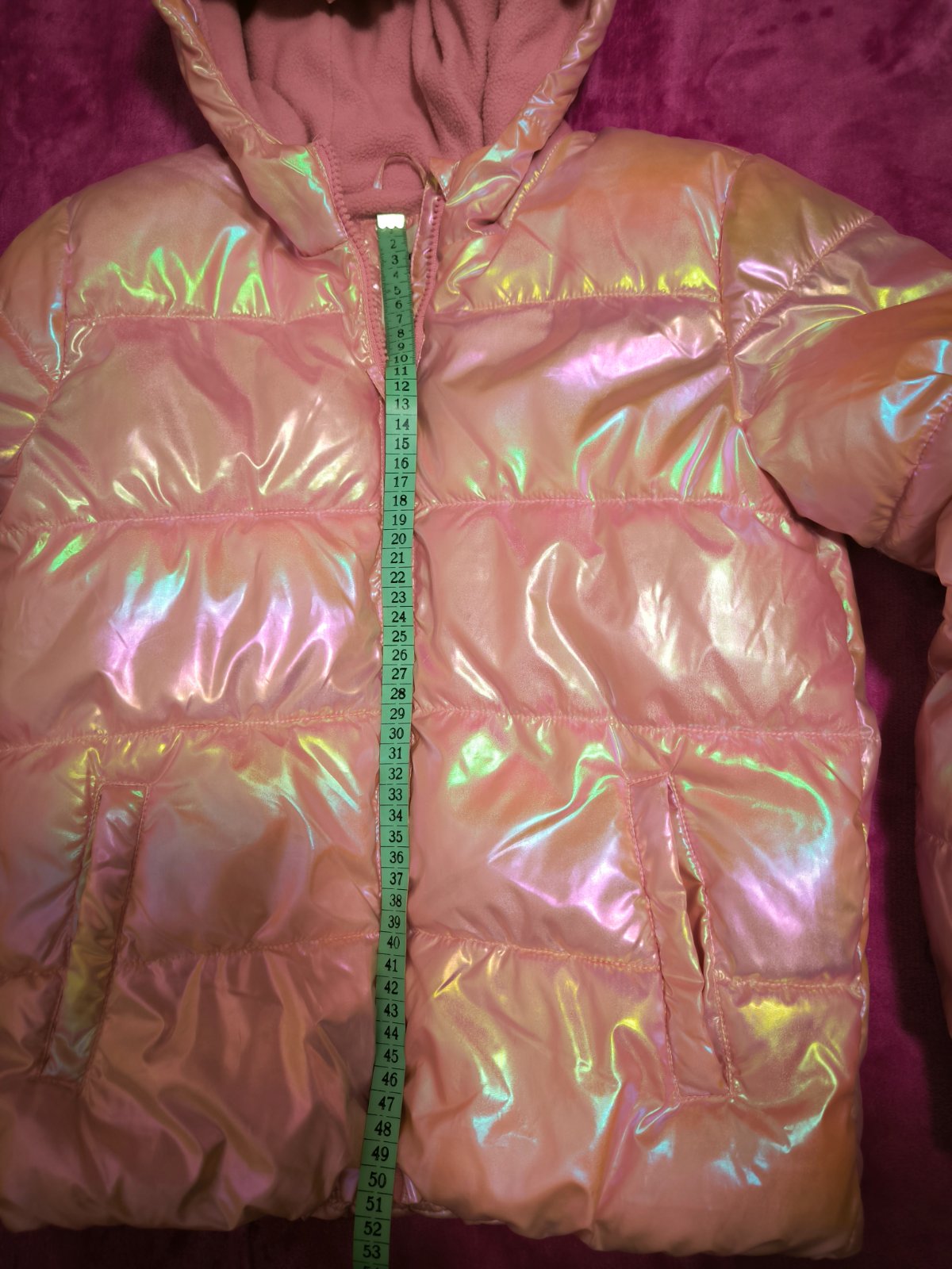 Dobrý deň posúvame krásnu zateplenú bundičku. Miery uvádzam na fotkách. Je ako nová vhodné na zimné obdobie. Nám už je malá inak veľmi obľúbená aj skrz metalické odlesky. Cena 7€.