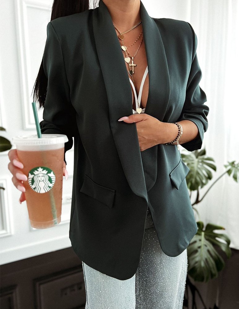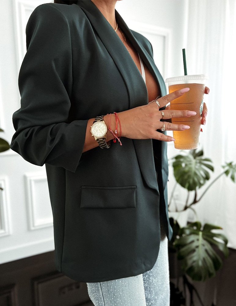 Dodaj svojmu outfitu šmrnc s týmto elegantnýmoversize tmavozeleným sakom Amiel s nariasenými rukávmi– ideálnym kúskom pre sebavedomé ženy, ktoré milujú štýlové, ale pohodlné oblečenie. Voľnejší strih sa krásne prispôsobí rôznym postavám a nariasené rukávy dodávajú modelu jedinečný ženský detail.