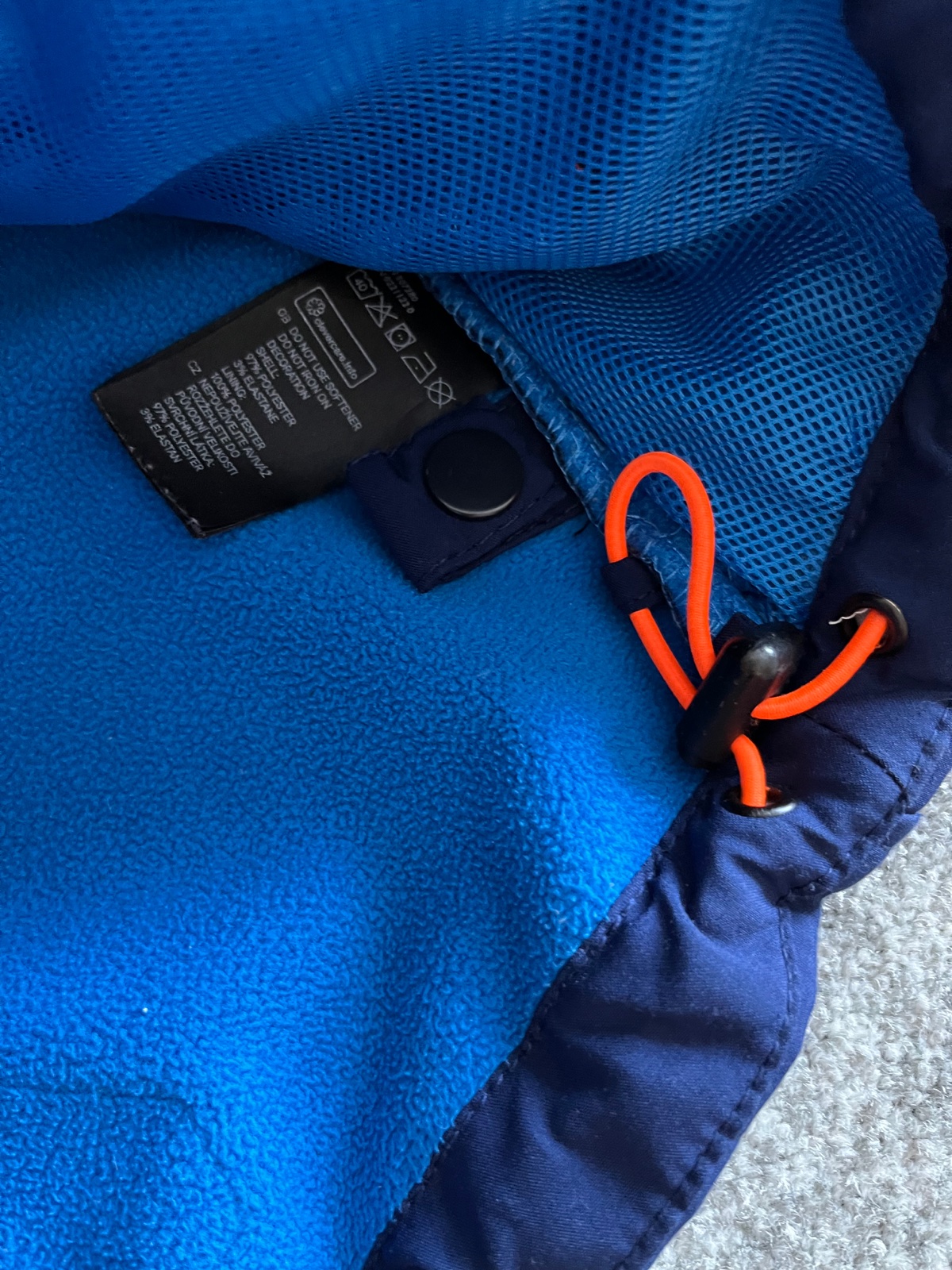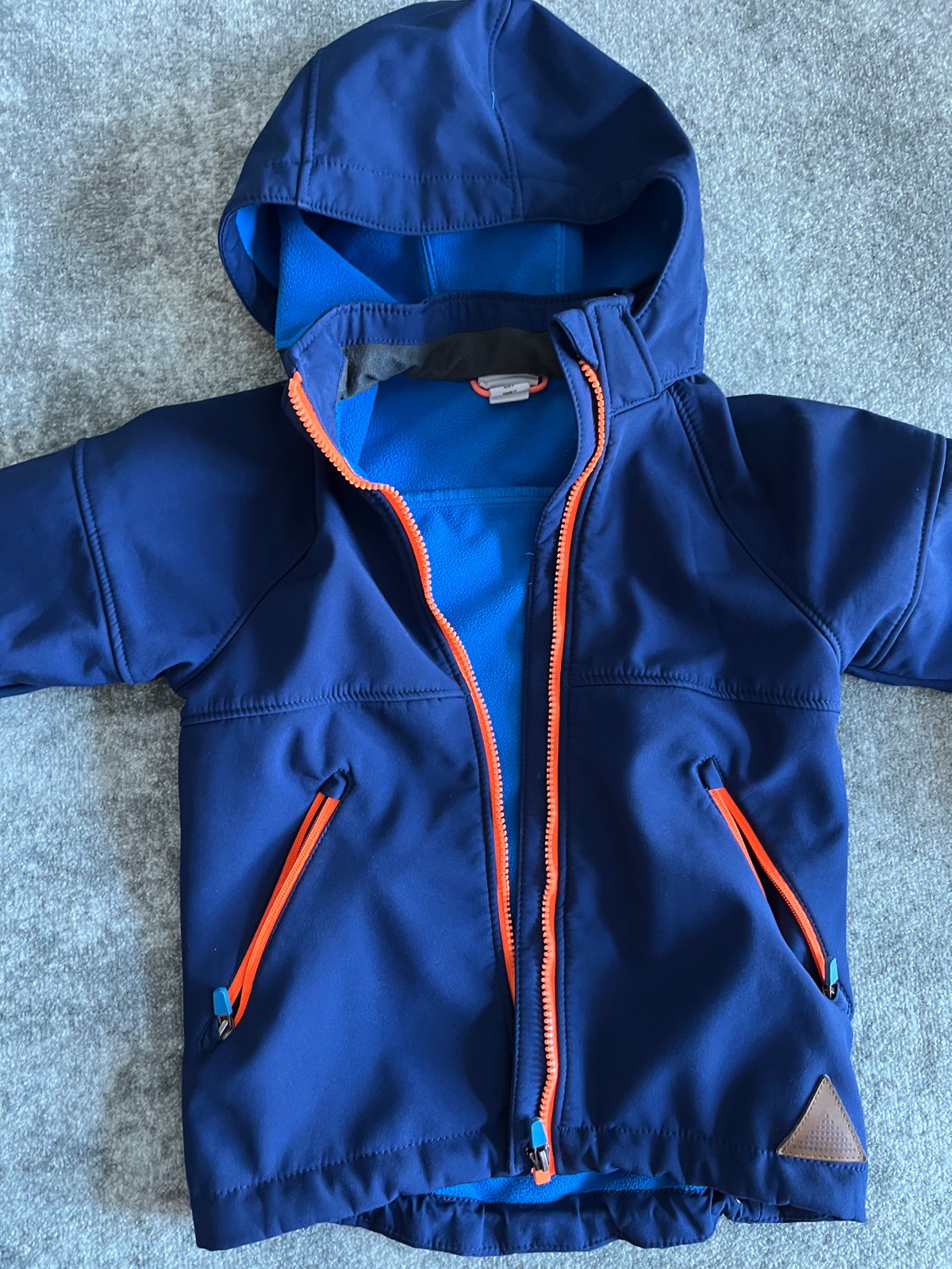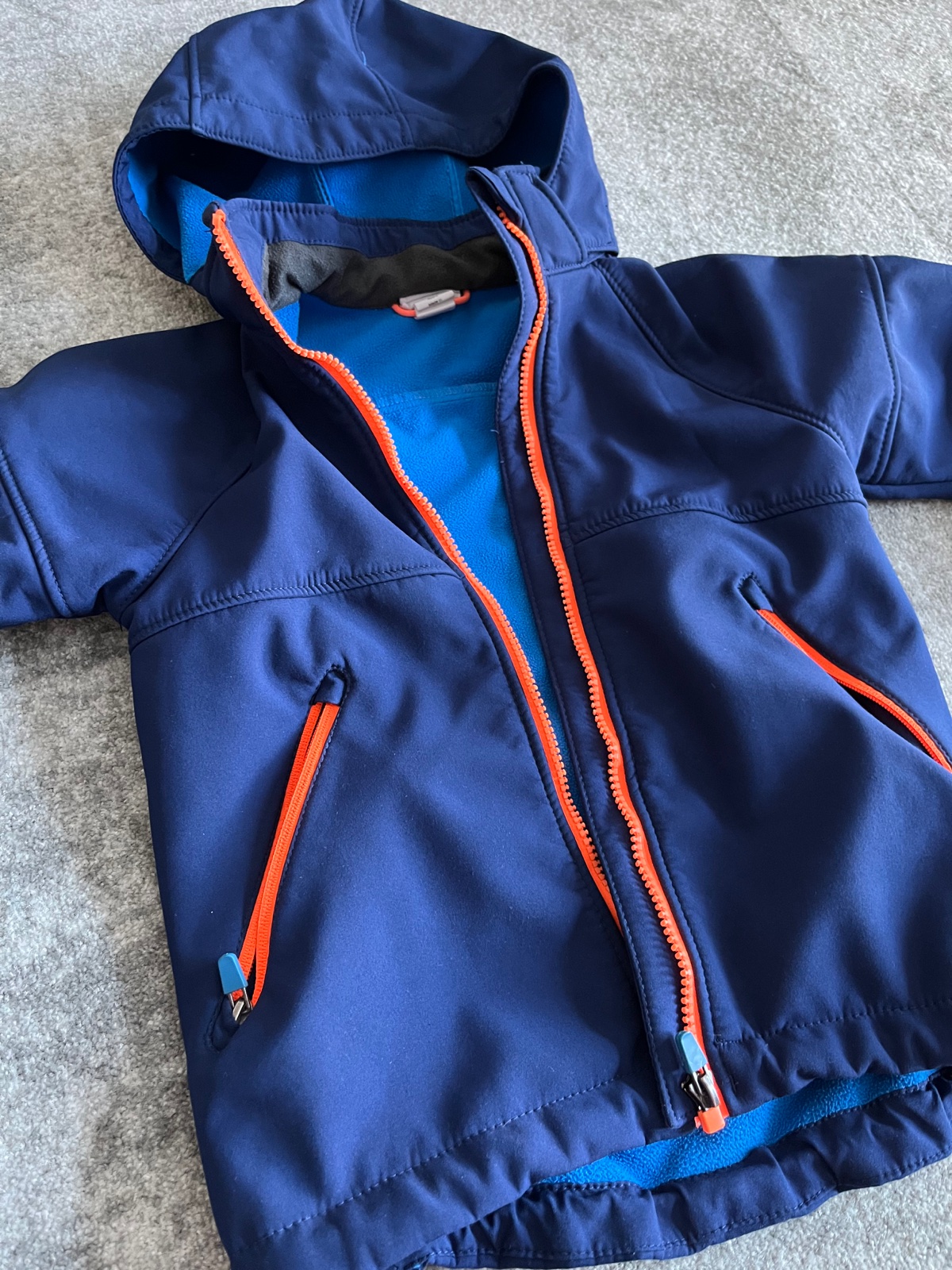 Softšelová vetrovka s potlačou dinosaurov a s odnímatelnou kapucňou. Veľkosť na 5-6 rokov. Veľmi pekný nosený stav bez poškodení.
