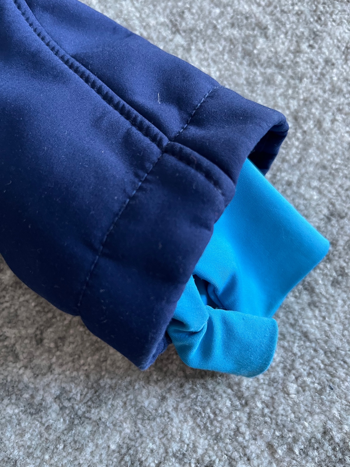 Tmavomodrá tenšia vetrovka. Kapucňa sa dá odopnúť. Nenosená. Rozmery na foto.