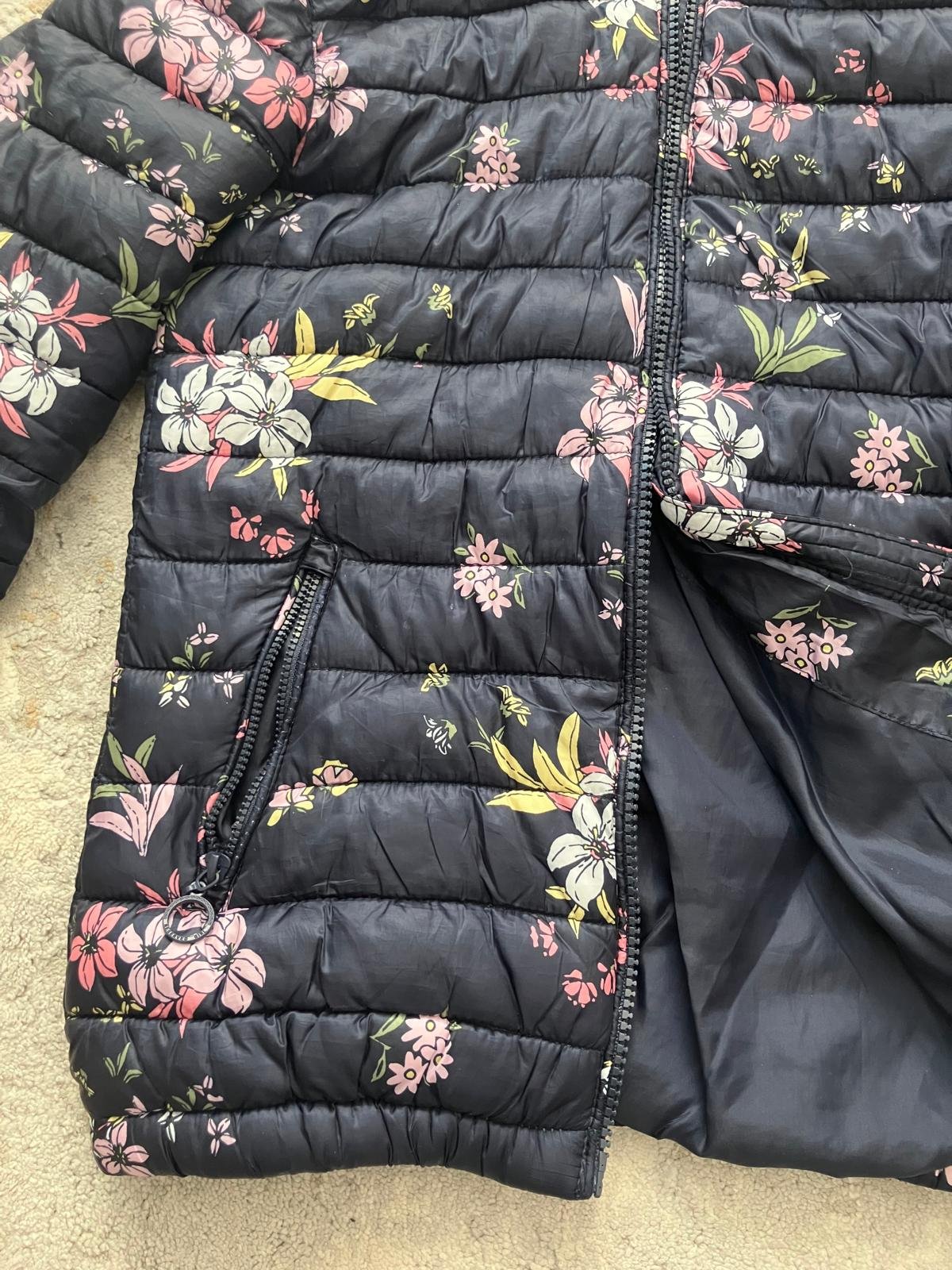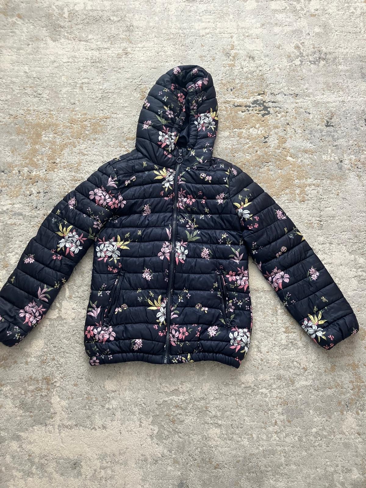 tensia jarna/jesenna bunda reserved, velk. 134 cm (8-9 Y). dobry noseny stav, pri rukave na kvetinovej casti odparane presitie. vonkajsia sirka 38 cm, dlzka 48 cm, dlzka rukavu od ramena 50,5 cm.