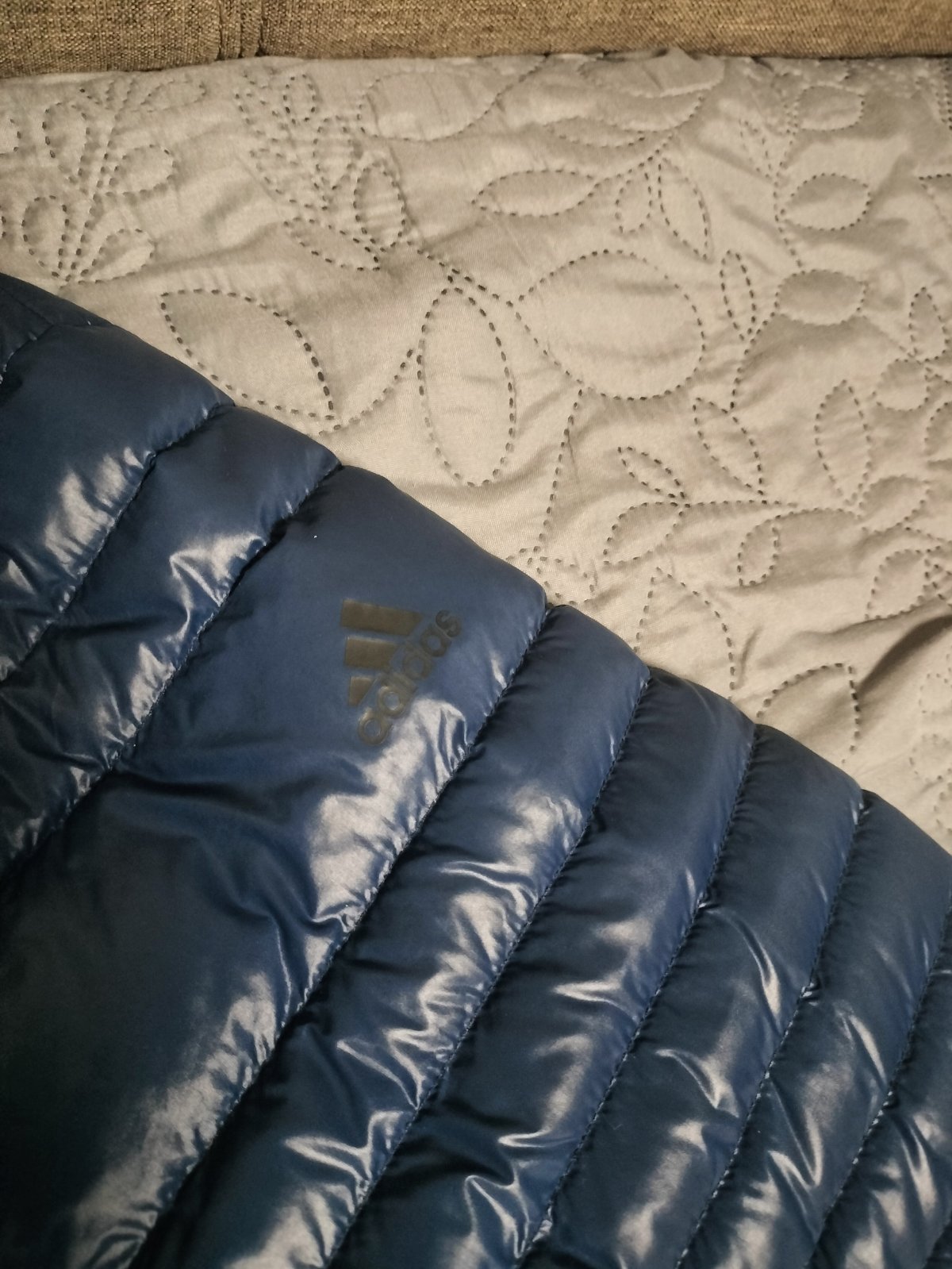 Raz oblecena panska casual bunda Adidas, prechodna, nezateplena. Vrch je mierne pogumovany, mala by zvladnut aj mierny dazd. Top stav bez poskodeni. Farba je tmavomodro-siva.