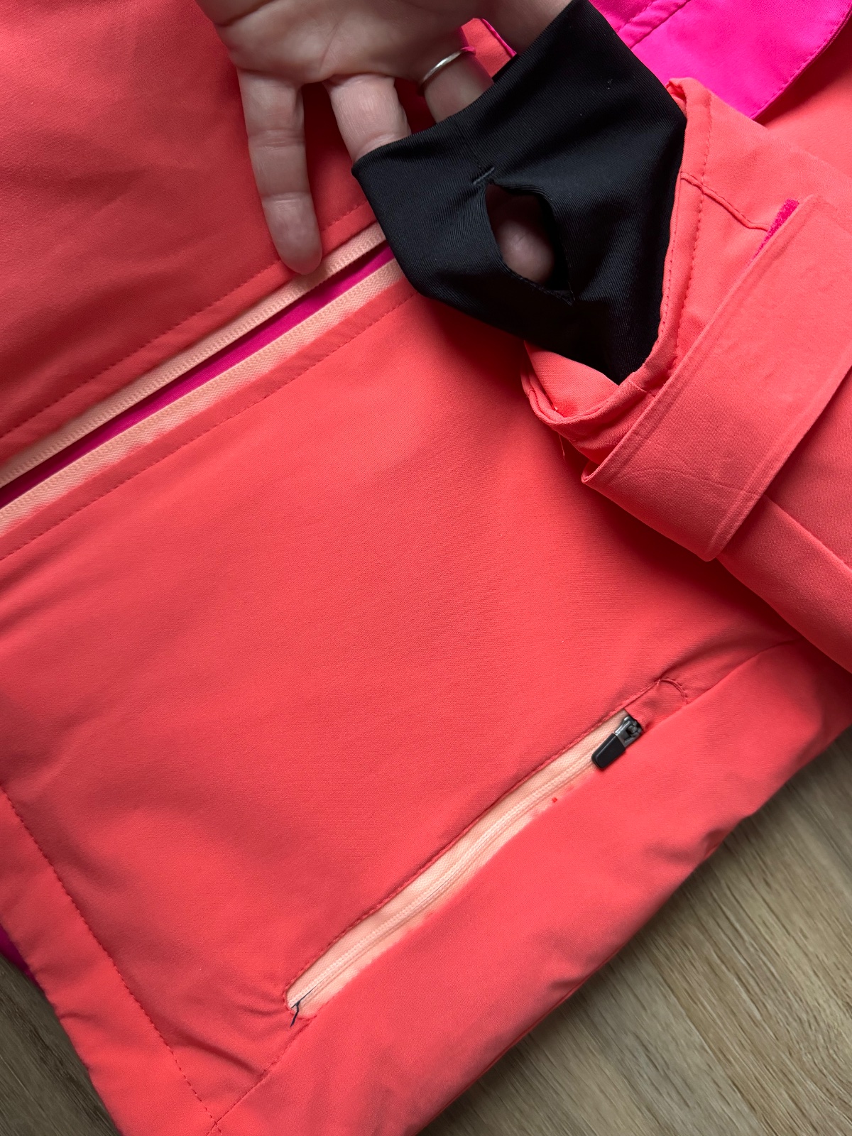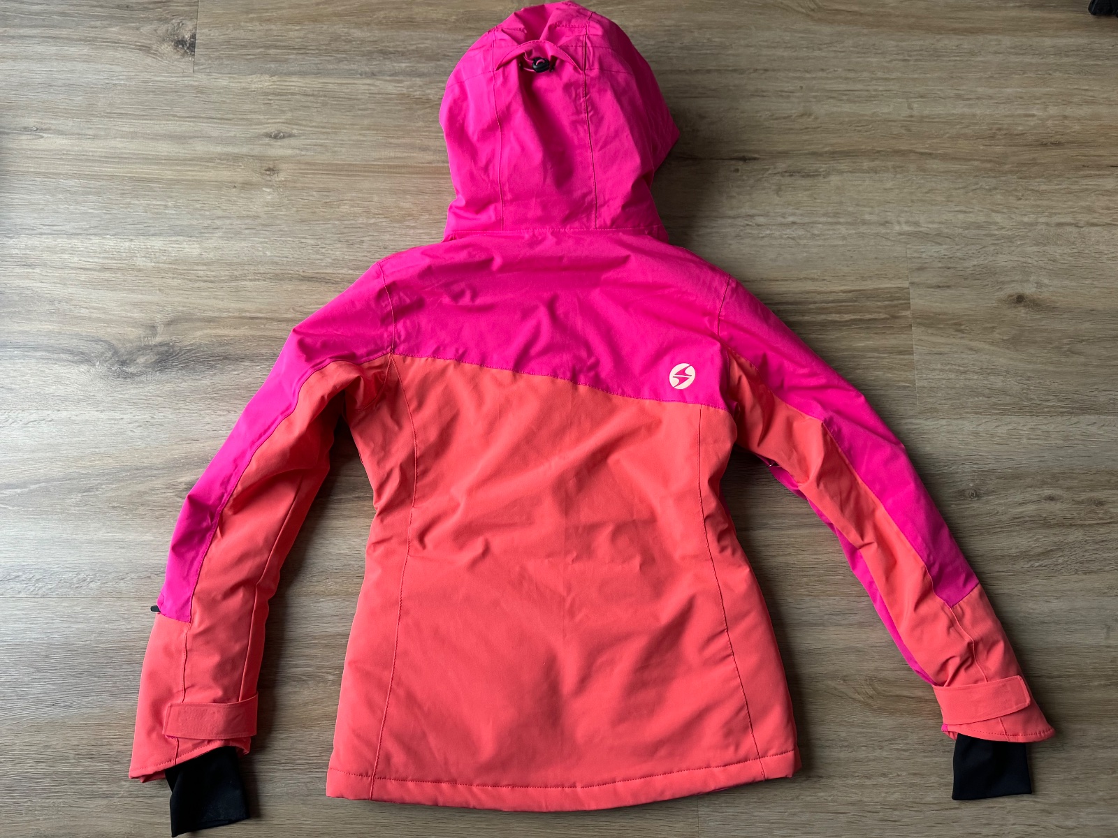 Kapucna je napevno, nejde odopnúť, vodny stlpec 20.000, snezny pas, manzety v rukavoch s otvorom na palec, sietovane vrecko vnutorne na okuliare, druhe vnutorne vrecko na zips, otvor na kabel sluchadiel, vrecko na rukave na skipas, regulacia v kapucni, v bokoch, na koncoch rukavov, odvetranie v podpazusi, podlepene svy, tvarovana na damsku postavu, strecova, pohodlna. Dcera ju bleskurychle vyrastla.