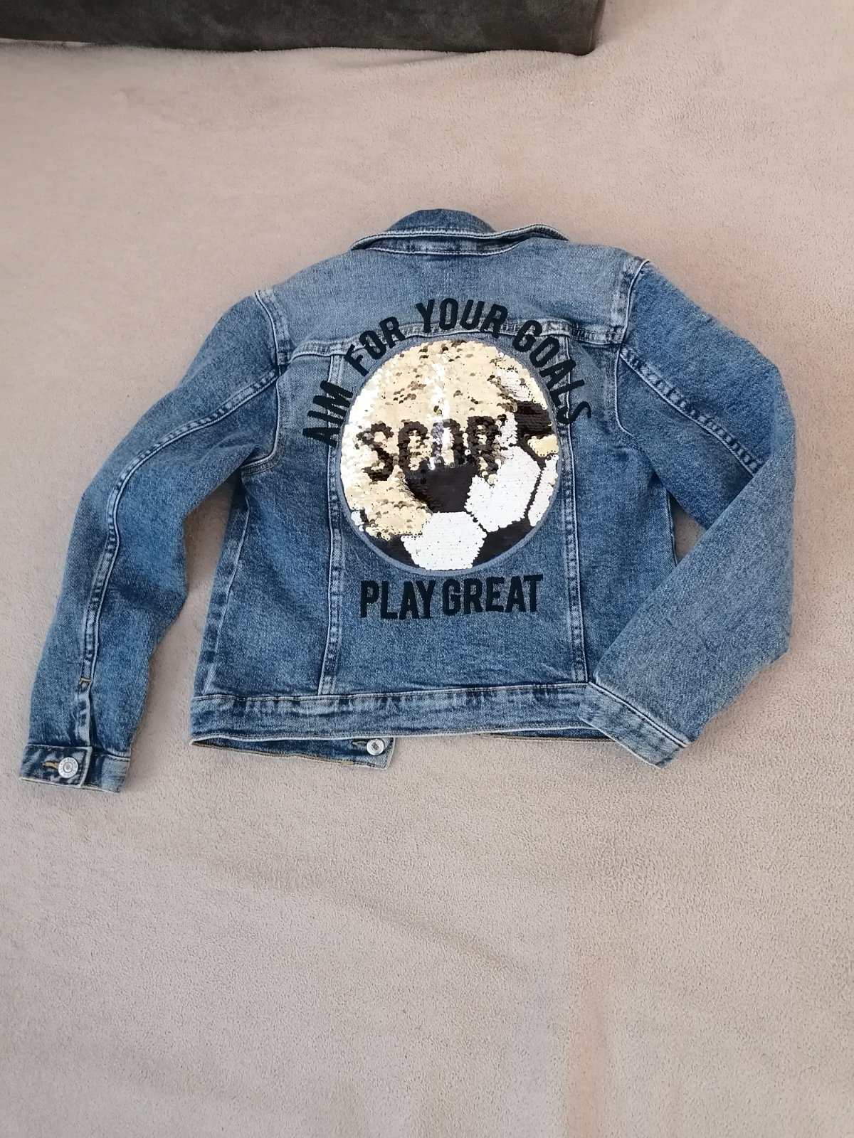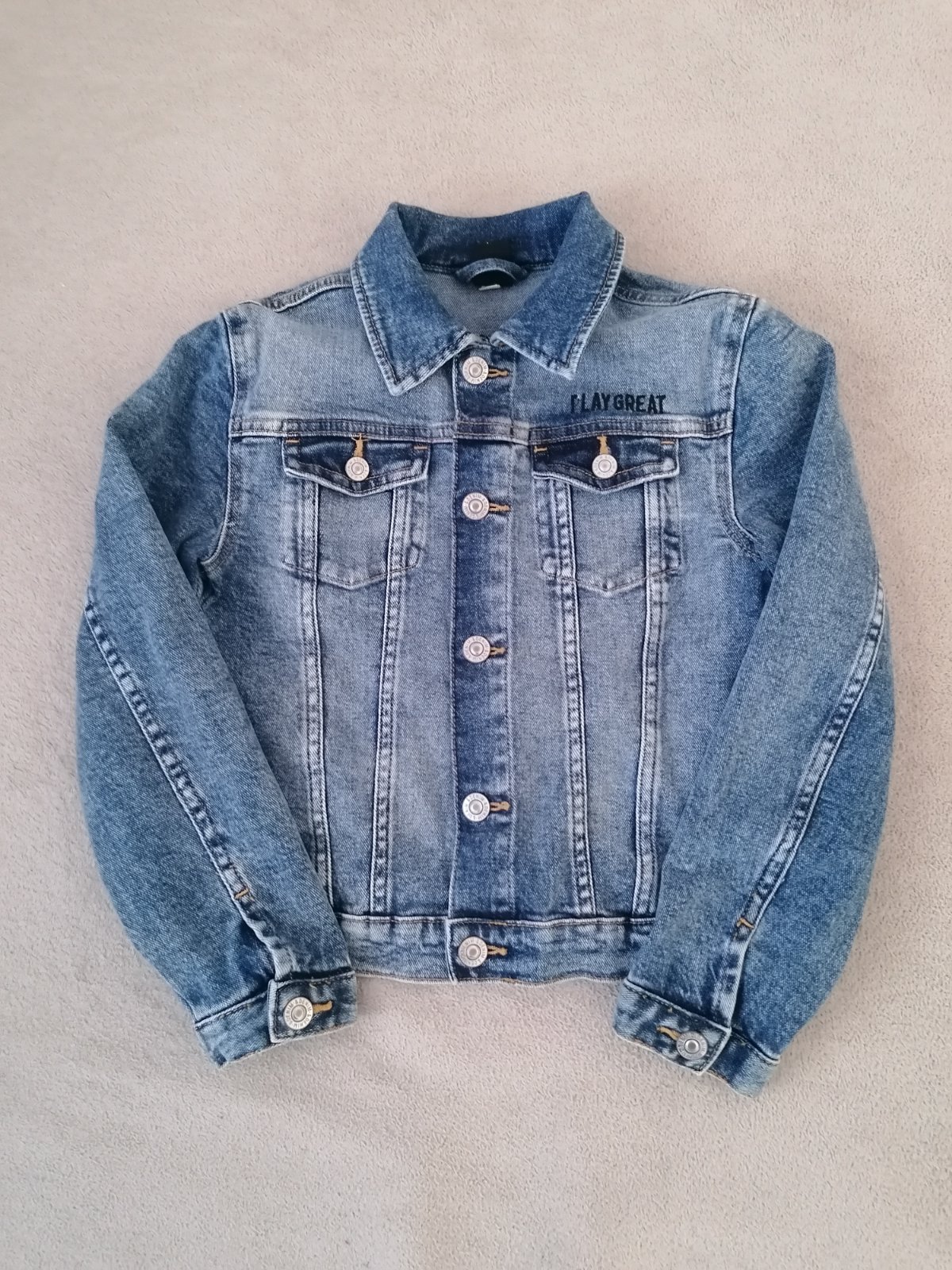 Perfektná riflova bundička, trosku elastická s praktickým zapínaním na cvoky. Veľ 128