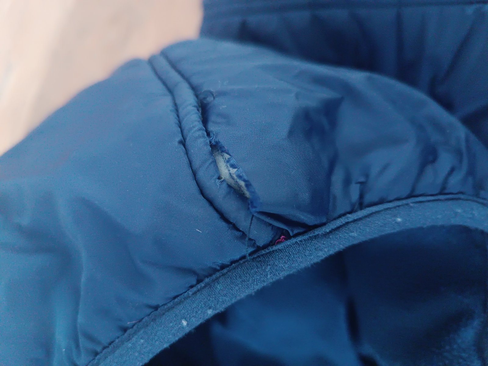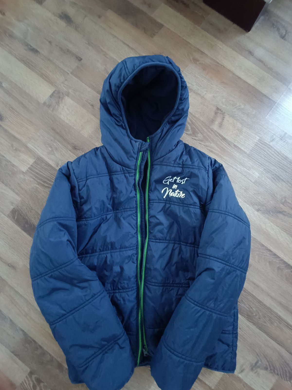 Zimná chlapčenská bunda, zvnútra zateplená. Malý kúsok na kapucni je rozparaný, dá sa zašiť. Veľkosť 152/158