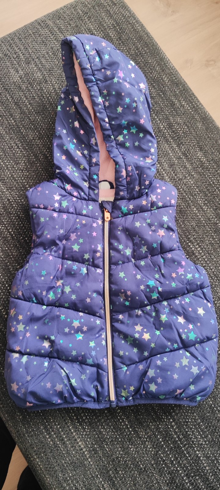 Zateplená vesta s kapucňou vo veľmi peknom stave, je ako nová. Rozmery: - hrudník: 33cm, - spodný lem: 30cm (pružná gumička), - celková dĺžka: 38cm.