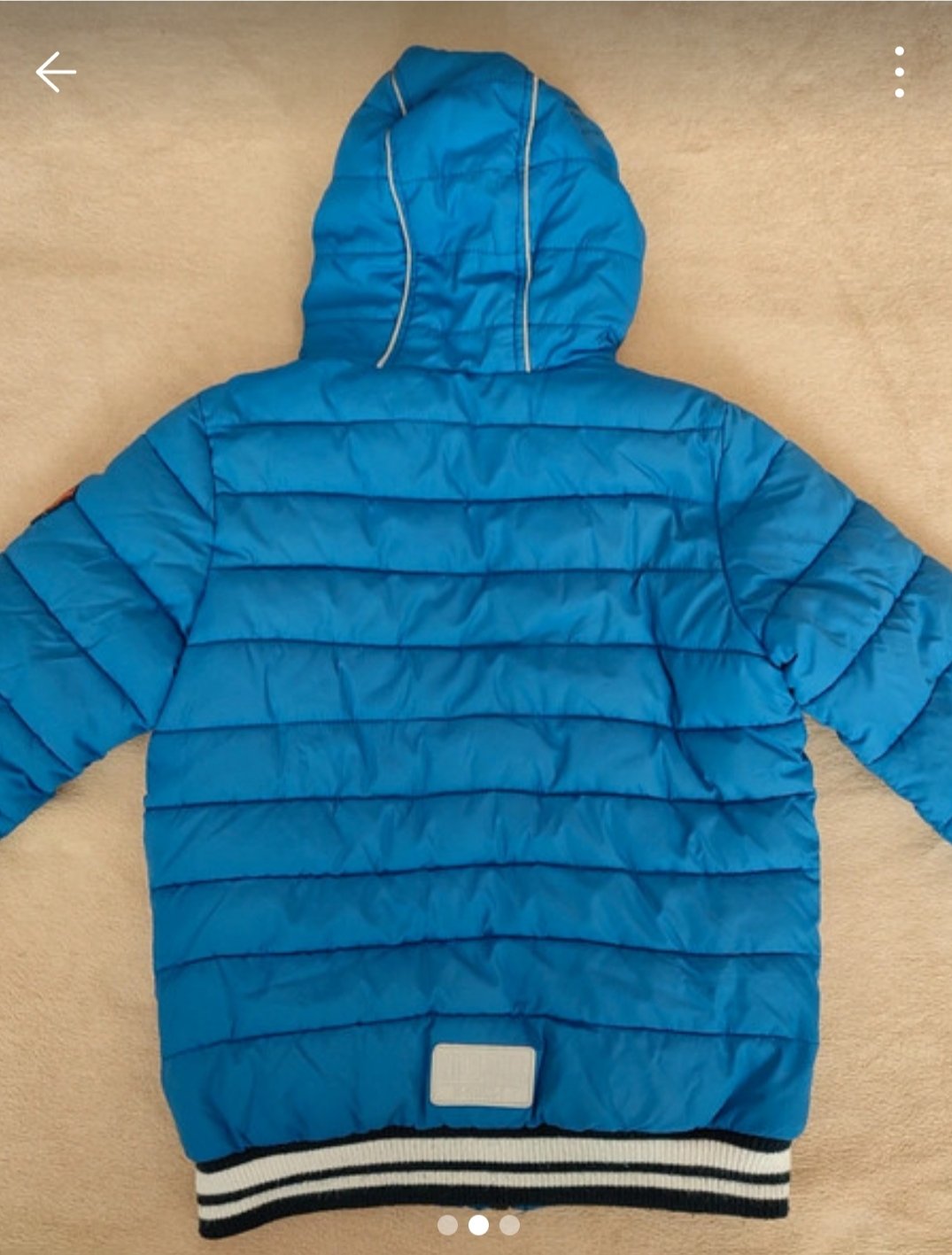 Zachovalá, nosená vetrovka podšitá flisom.Na prechod,alebo miernejšiu zimu.Tenké reflexné pásy pri vreckách sú praním miestami zošuchané.Ešte poslúži.