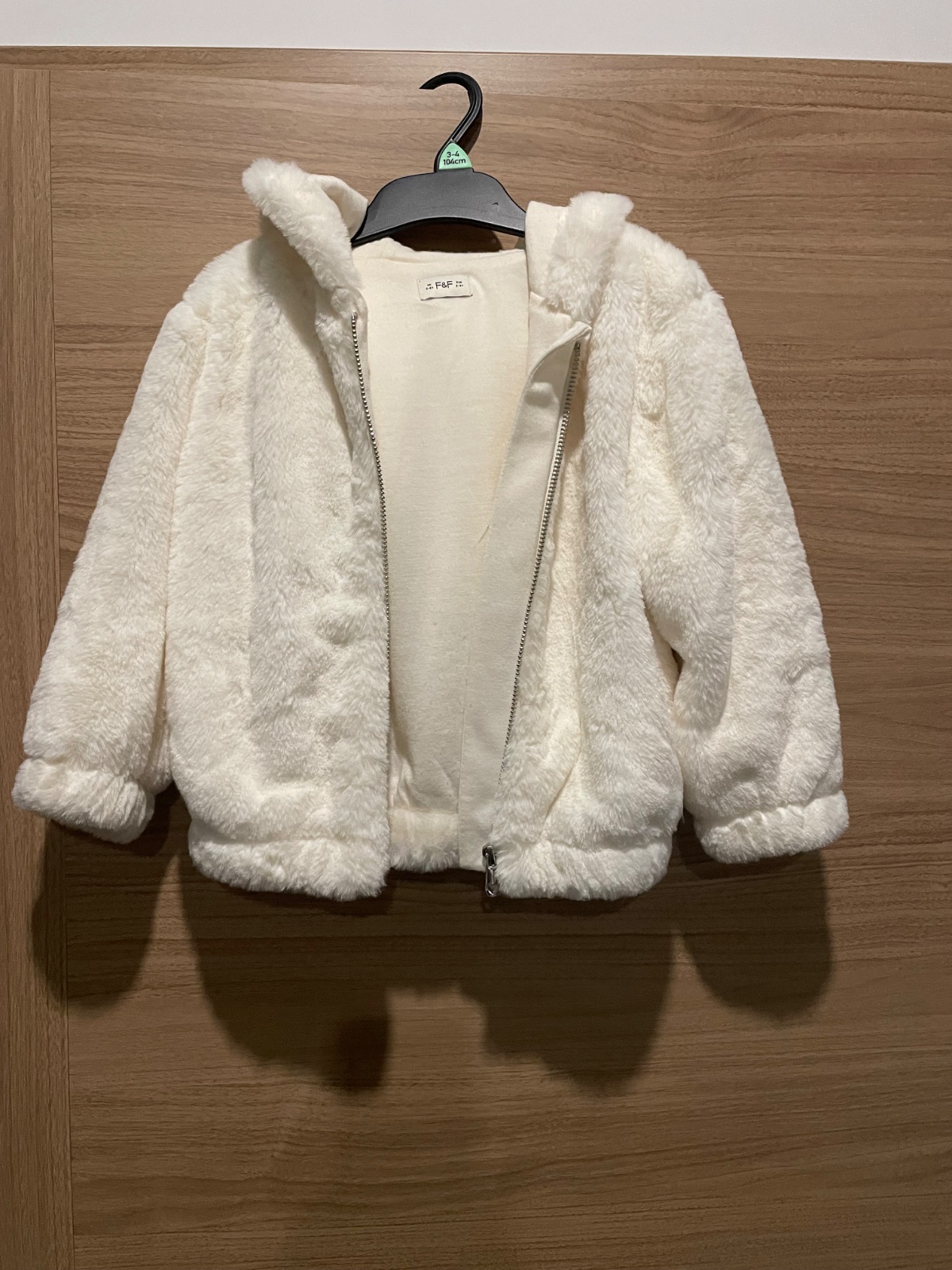 Biela teplučká bundička s nádychom krémovej farby, na prechodné obdobie, TOP stav, č.98. Nosená príležitostne. Cena 8 € + poštovné.