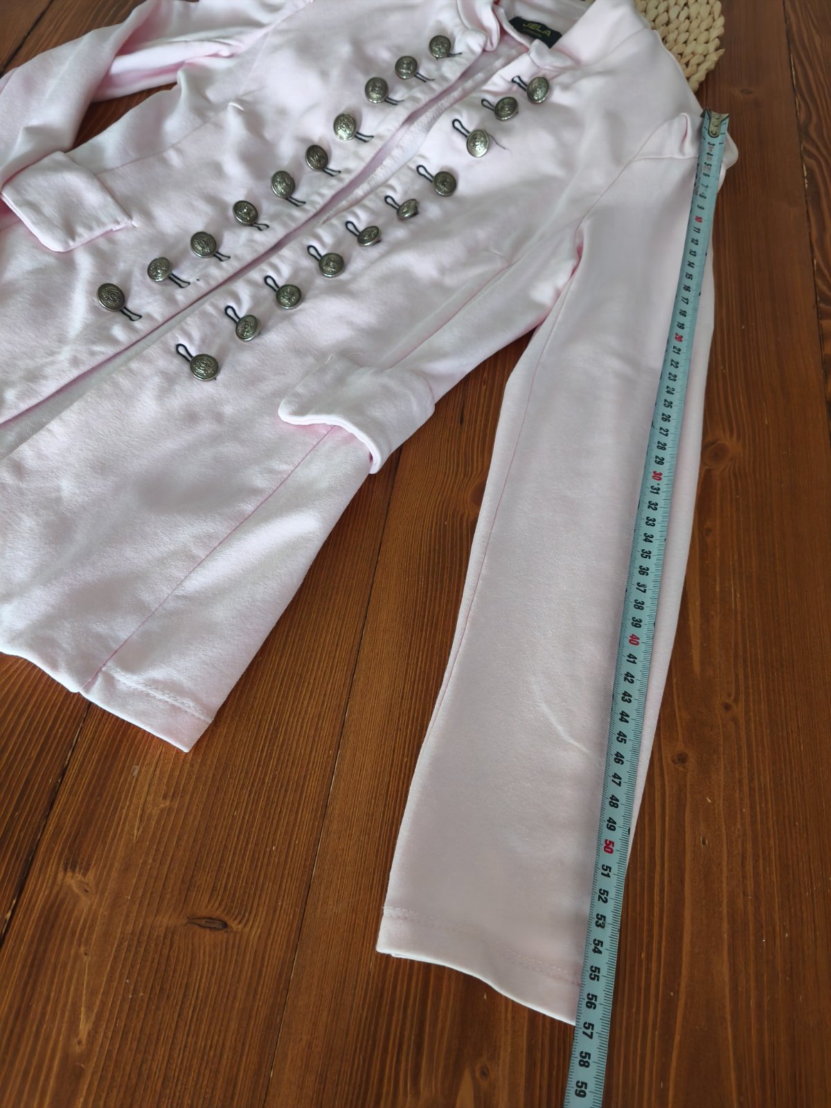 Velmi pekne sako, malo nosene :) Dlzka rukava 59cm a dlzka rukava od podpazusia 44cm... celkova dlzka od pleca je 56cm... sirka merana pod podpazusim 41cm x 2 sacko je mierne elasticke