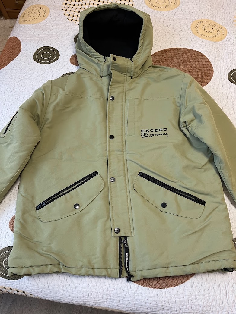 Krásna hráškovo zelená bunda...kúpená nová nosená len synom...je bez poškodení...miery na fotkách...cena 15€ + pošta na dobierku neposielam
