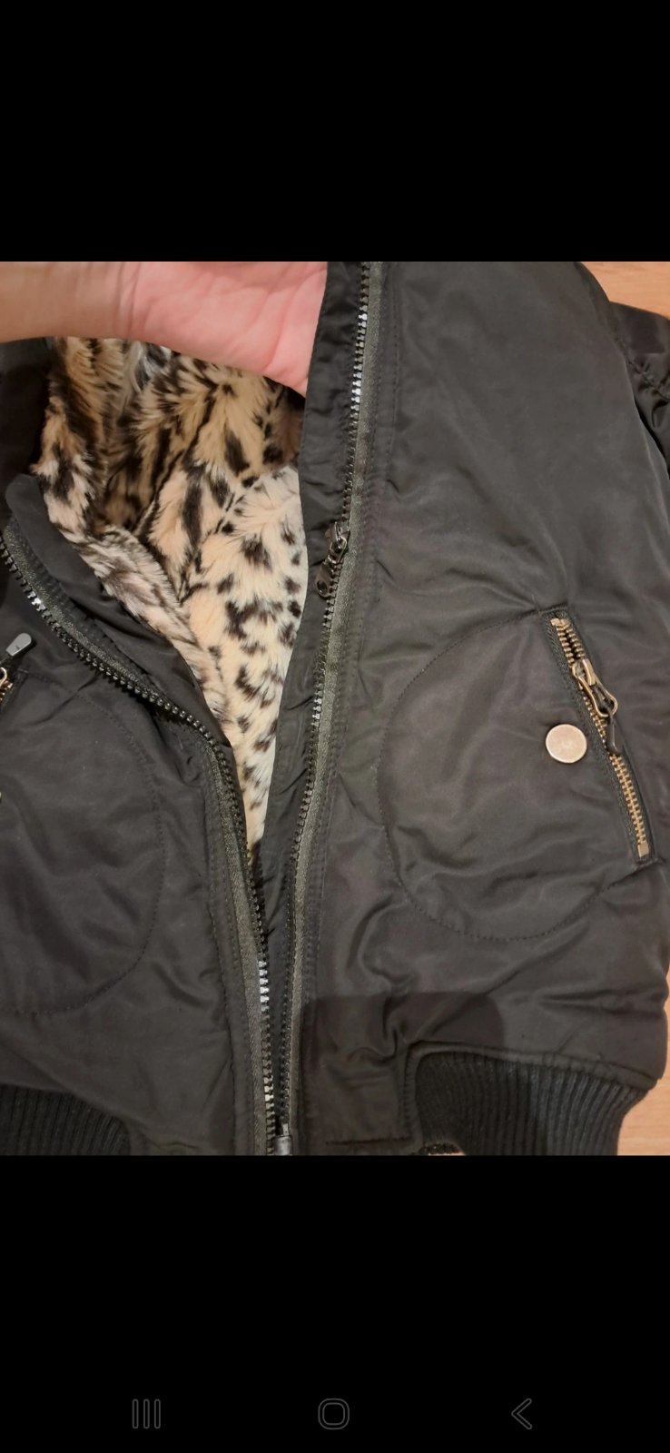 Pekná teplučká bunda, vnútro je makké, imitácia kožušinky.